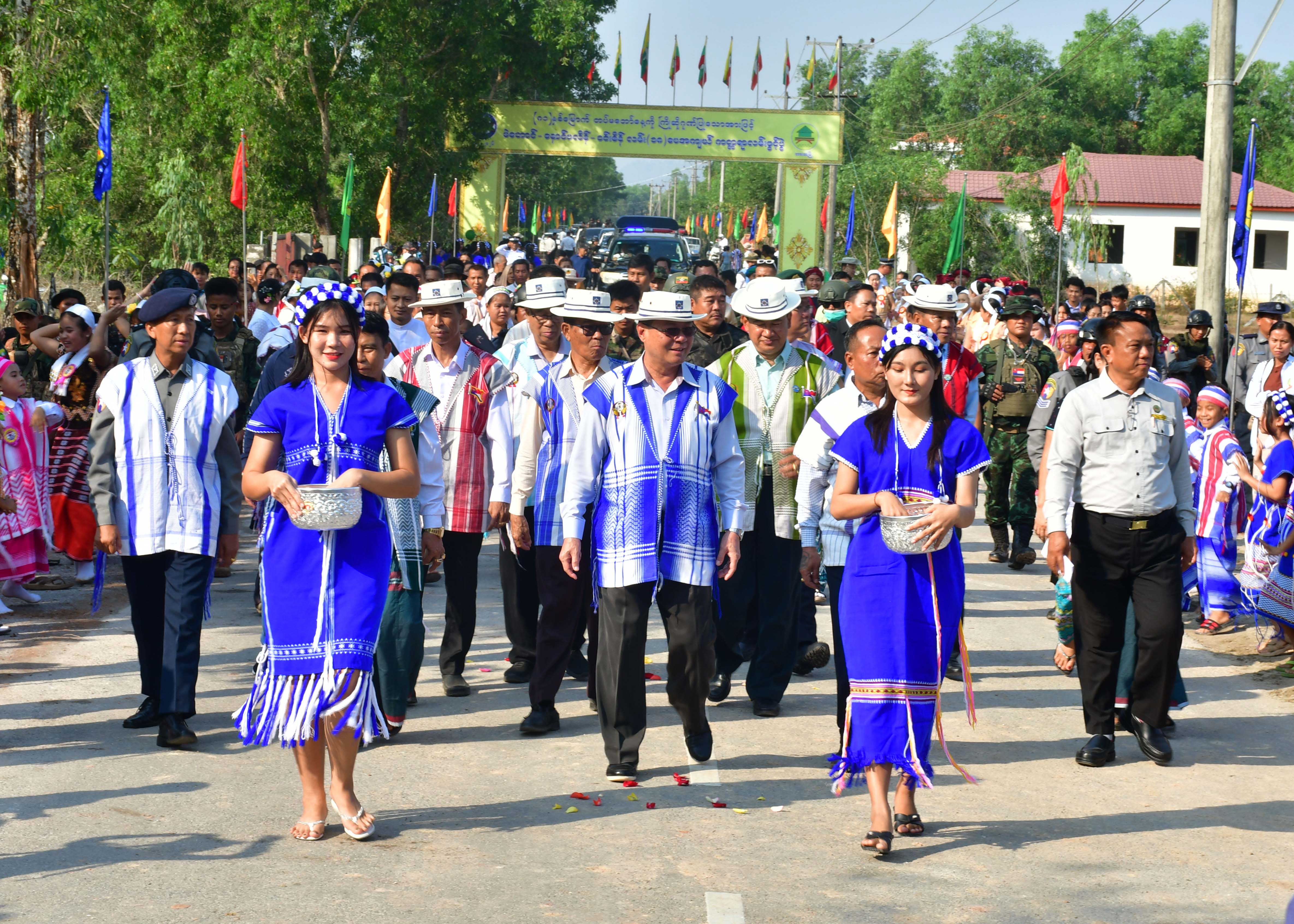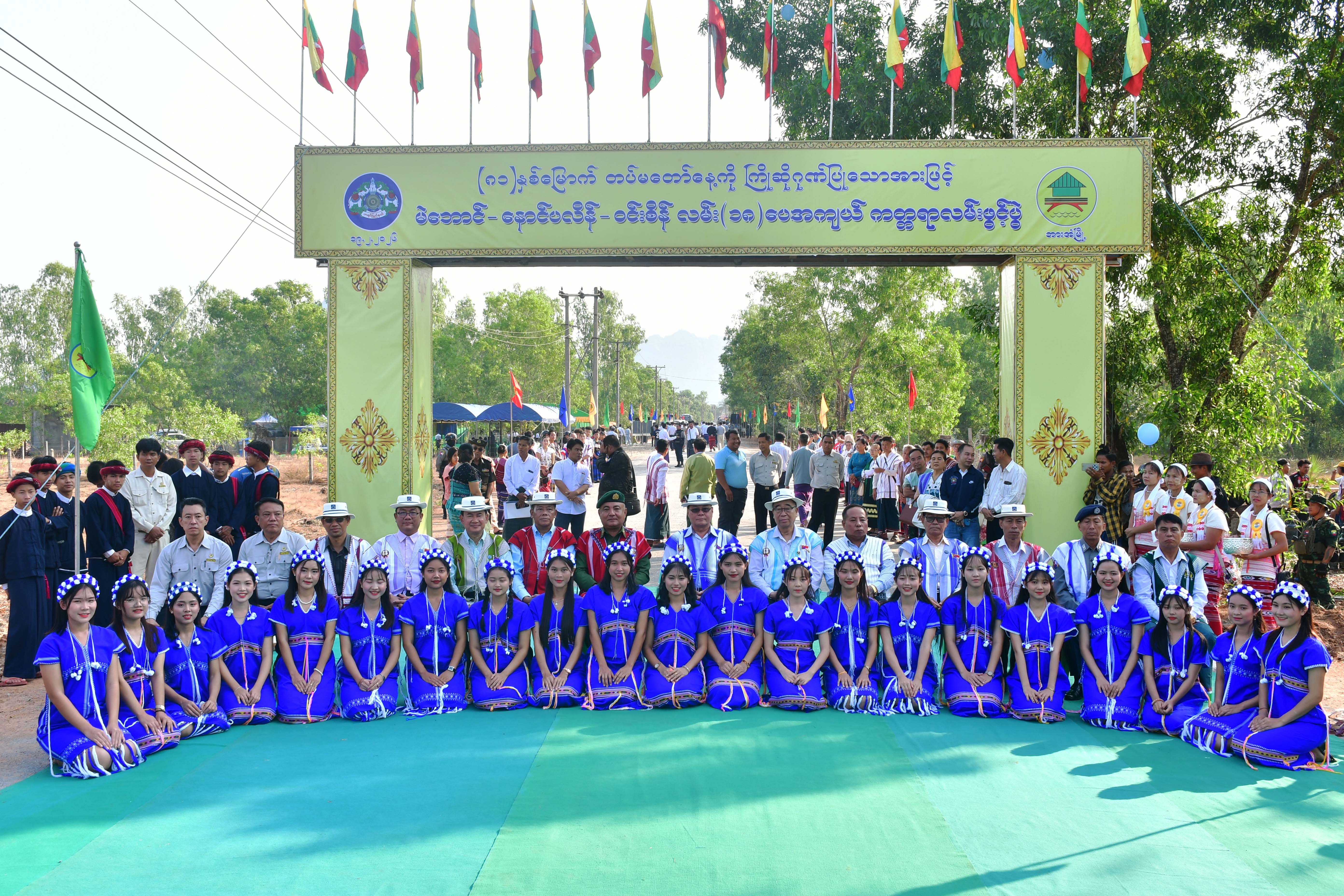 ထို့နောက် မဲဘောင်-နောင်ပလိန်-ဝင်းစိန်လမ်းပေါ်ရှိ (၁၈)ပေအကျယ်ကတ္တရာလမ်း ၂ မိုင် ၂ ဖာလုံဖွင့်ပွဲကို ကျင်းပရာ ပြည်နယ်ဝန်ကြီးချုပ်၊ ပြည်နယ်တရားလွှတ်တော်တရားသူကြီးချုပ်၊ ပြည်နယ်ဝန်ကြီးများနှင့်တာဝန်ရှိသူများက လမ်းအားဖဲကြိုးဖြတ်ဖွင့်လှစ်ပေးကြသော ဖွင့်ပွဲတွင်ပါဝင်အားဖြည့်ကူညီပေးကြသော ဘင်ခရာ၊ပန်းပွားအဖွဲ့နှင့်ယဉ်ကျေးမှု အဖွဲ့များနှင့်စုပေါင်းမှတ်တမ်းဓာတ်ပုံများရိုက်ကူး၍ ဂုဏ်ပြုဆုများပေးအပ်ချီးမြှင့်ကြသည်။