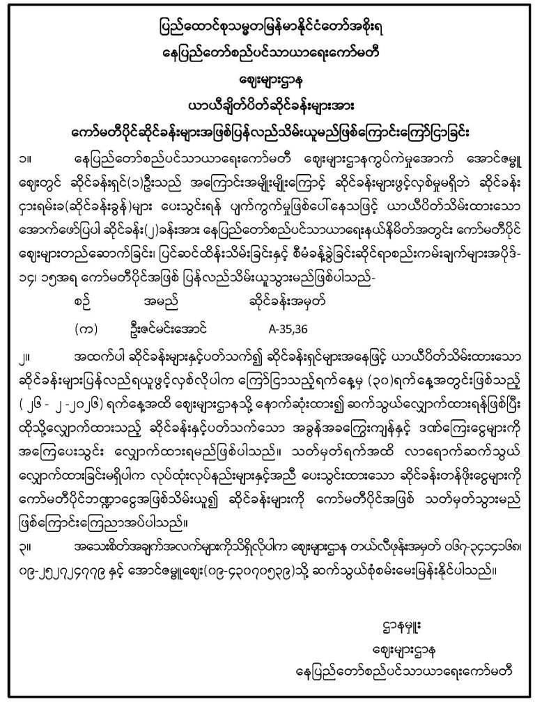 Downloadနေပြည်တော်စည်ပင်သာယာရေးကော်မတီ၊ဈေးများဌာနမှ အသိပေးကြော်ငြာခြင်း