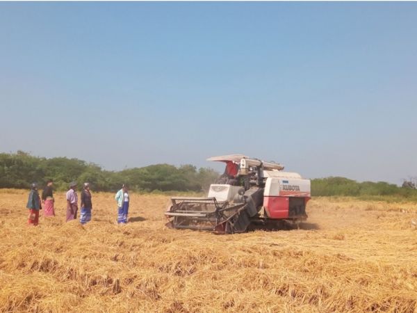 စဉ့်ကိုင်မြို့နယ်တွင် သမဝါယမအသင်းသားများ၏ မိုးစပါးရိတ်သိမ်းနေမှုအားကြည့်ရှု
