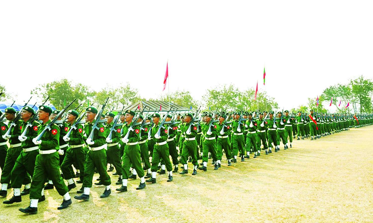 တြိဂံဒေသတိုင်းစစ်ဌာနချုပ်၏ နှစ် (၃၀) ပြည့် တိုင်းနှစ်ပတ်လည်နေ့ စစ်ရေးပြအခမ်းအနားကို ယနေ့နံနက်ပိုင်းတွင် တိုင်းစစ်ဌာနချုပ်စစ်ရေးပြကွင်း၌ ကျင်းပရာ တိုင်းမှူး ဗိုလ်ချုပ် စိုးလှိုင်နှင့် အဖွဲ့ဝင်များ၊ အရာရှိ၊ စစ်သည်၊ မိသားစုဝင်များ၊ ပြည်သူ့စစ် (ဌာနေ) တပ်ဖွဲ့ဝင်များ၊ စစ်မှုထမ်းဟောင်းအဖွဲ့ဝင်များ၊ ပြည်နယ်၊ ခရိုင်၊ မြို့နယ်အဆင့် ဌာနဆိုင်ရာတာဝန်ရှိသူများနှင့် ဖိတ်ကြားထားသူများ တက်ရောက်ကြသည်။