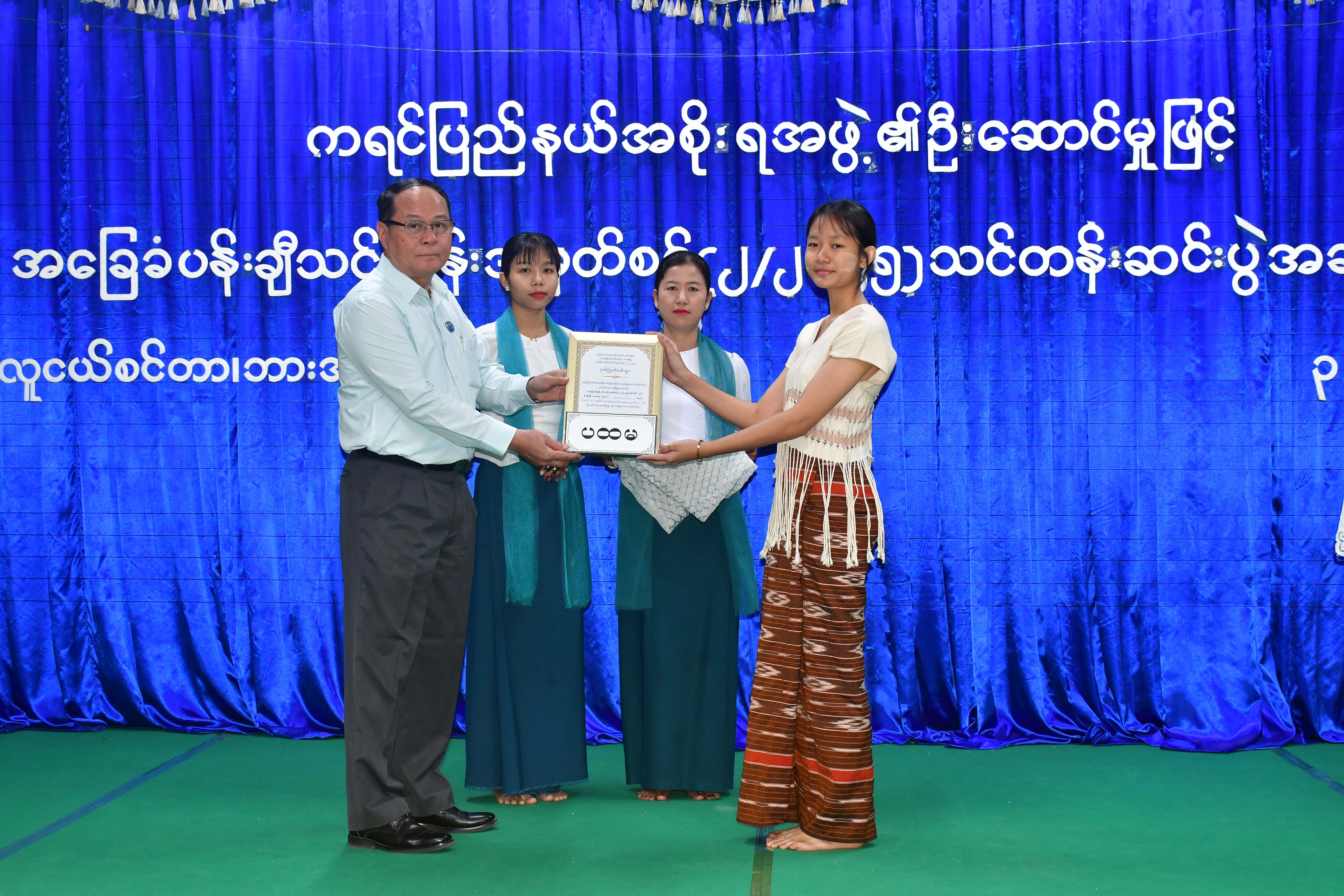ဦးစွာ ပြည်နယ်ဝန်ကြီးချုပ်ဦးစောမြင့်ဦးက လူငယ်များသည် နောင်တစ်ချိန်တွင်နိုင်ငံ့တာဝန်များကို ပခုံးပြောင်း တာဝန်ထမ်းဆောင်ကြမည့်သူများဖြစ်ရာ လူငယ်များကိုပြုစုပျိုးထောင်ပေးခြင်းသည် အနာဂတ်နိုင်ငံတော်ကိုဖန်တီး ပုံဖော်နေခြင်းဖြစ်ကြောင်း၊ သင်တန်းဆင်း သင်တန်းသား၊သင်တန်းသူများအနေဖြင့် မိမိတို့၏ဖန်တီး နိုင်စွမ်းကိုယုံကြည်ပြီး ပန်းချီအနုပညာမှတစ်ဆင့် မိမိဘဝကိုတိုးတက်စေမည့် ပညာရပ်များကို ဆက်လက်ဆည်းပူးလေ့လာရင်း ကရင်ပြည်နယ် နှင့်နိုင်ငံ့အကျိုးကို သယ်ပိုးဆောင်ရွက်နိုင်သည့် လူကောင်း၊လူတော်များဖြစ်အောင် ကြိုးစားကြစေလိုကြောင်း ပြောကြား သည်။