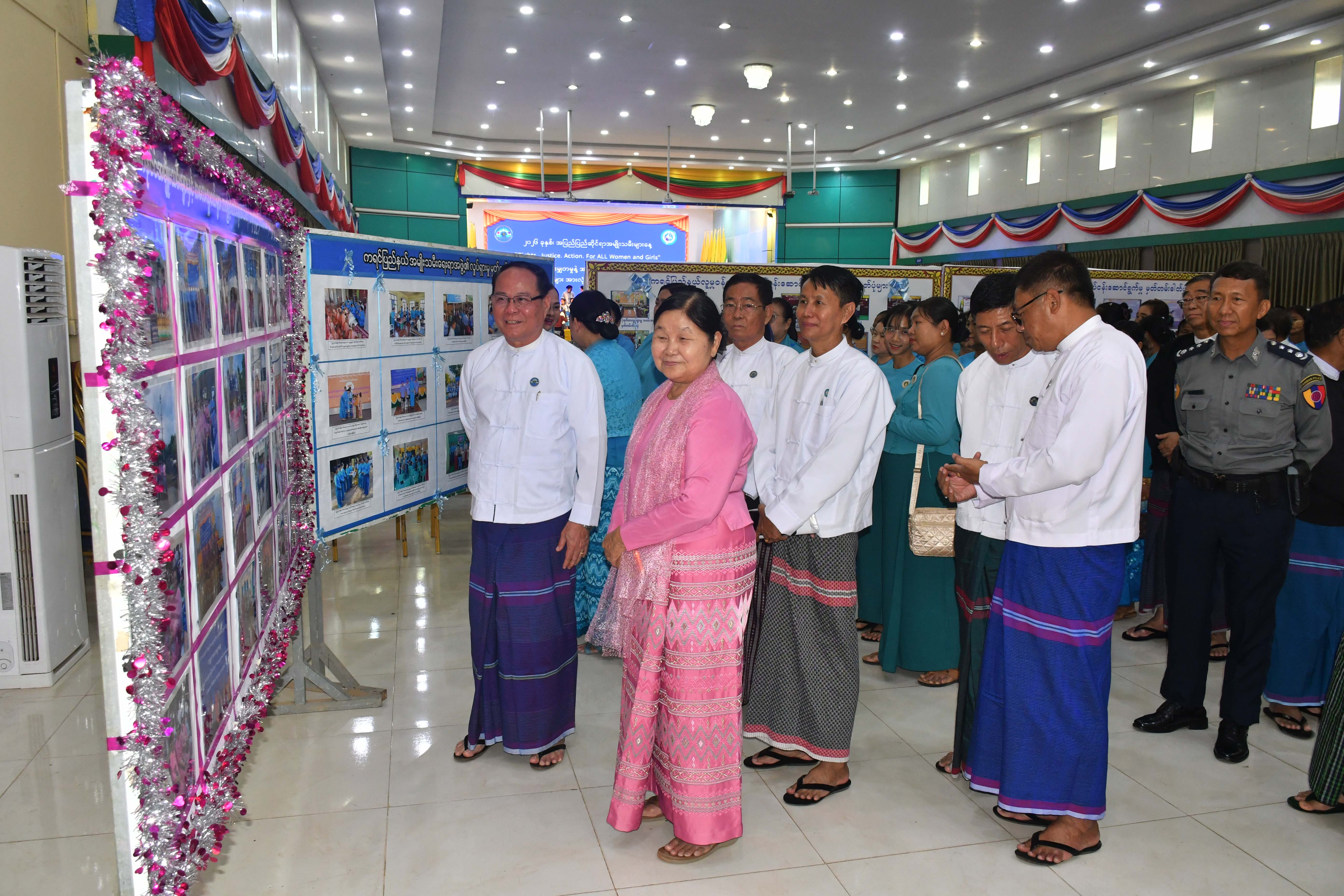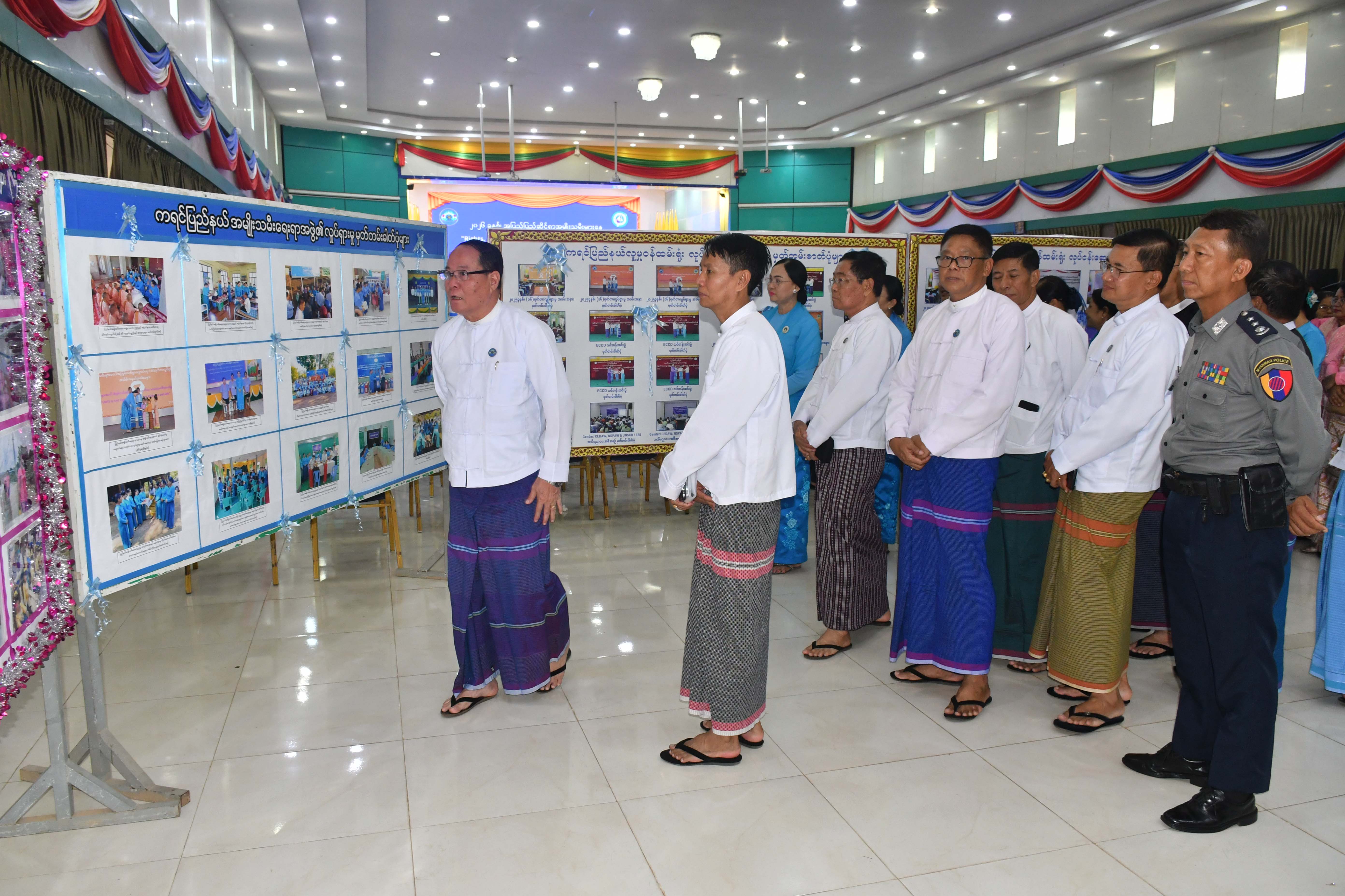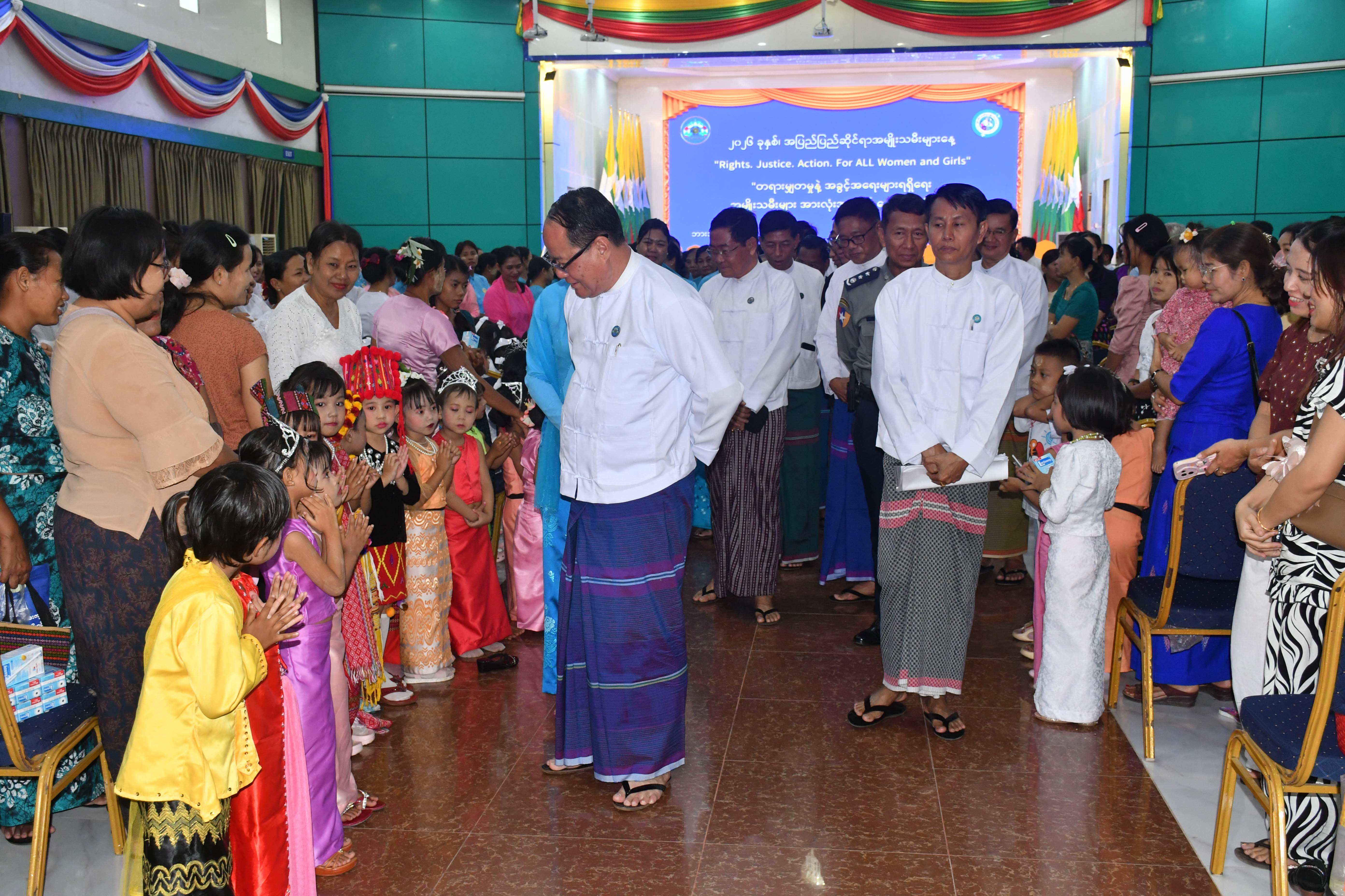 ဦးစွာ ပြည်နယ်ဝန်ကြီးချုပ်က ကရင်ပြည်နယ်အတွင်း အမျိုးသမီးများနှင့်အမျိုးသမီးငယ်ရွယ်များအတွက် တရား မျှတမှုနှင့် ကာကွယ်စောင့်ရှောက်မှုအပါအဝင် ပညာရေး၊ ကျန်းမာရေး၊ စီးပွားရေး၊ လူမှုရေး အစရှိသည့်ကဏ္ဍအားလုံးတွင် အခွင့်အရေးများကို အပြည့်အဝရရှိအောင် အကောင်အထည်ဖော်ဆောင်ရွက်ပေးလျက်ရှိကြောင်း၊ ပြည်နယ်အမျိုးသမီး ကော်မတီကို ဖွဲ့စည်းထားပြီး အမျိုးသမီးကာကွယ်စောင့်ရှောက်ရေးလုပ်ငန်းများနှင့်ဖွံ့ဖြိုးရေးလုပ်ငန်းများကို လူမှုရေး အသင်းအဖွဲ့များ၊ အစိုးရမဟုတ်သော ပြည်တွင်း/ပြည်ပအဖွဲ့အစည်းများနှင့်ပူးပေါင်းအကောင်အထည်ဖော်ဆောင်ရွက် လျက်ရှိပြီး ပြည်နယ်အတွင်း အမျိုးသမီးများအားလုံးဘဝလုံခြုံမှုရှိစေရန်၊ တရားမျှတမှုရှိစေရန်နှင့် ကဏ္ဍပေါင်းစုံတွင်တန်း တူညီမျှပါဝင်ခွင့်ရရှိစေရန် ဌာနဆိုင်ရာများ၊ အရပ်ဘက်လူမှုအဖွဲ့အစည်းများအားလုံး ဝိုင်းဝန်းကြိုးပမ်းဆောင်ရွက်ပေးကြ ရန် တိုက်တွန်းပြောကြားသည်။