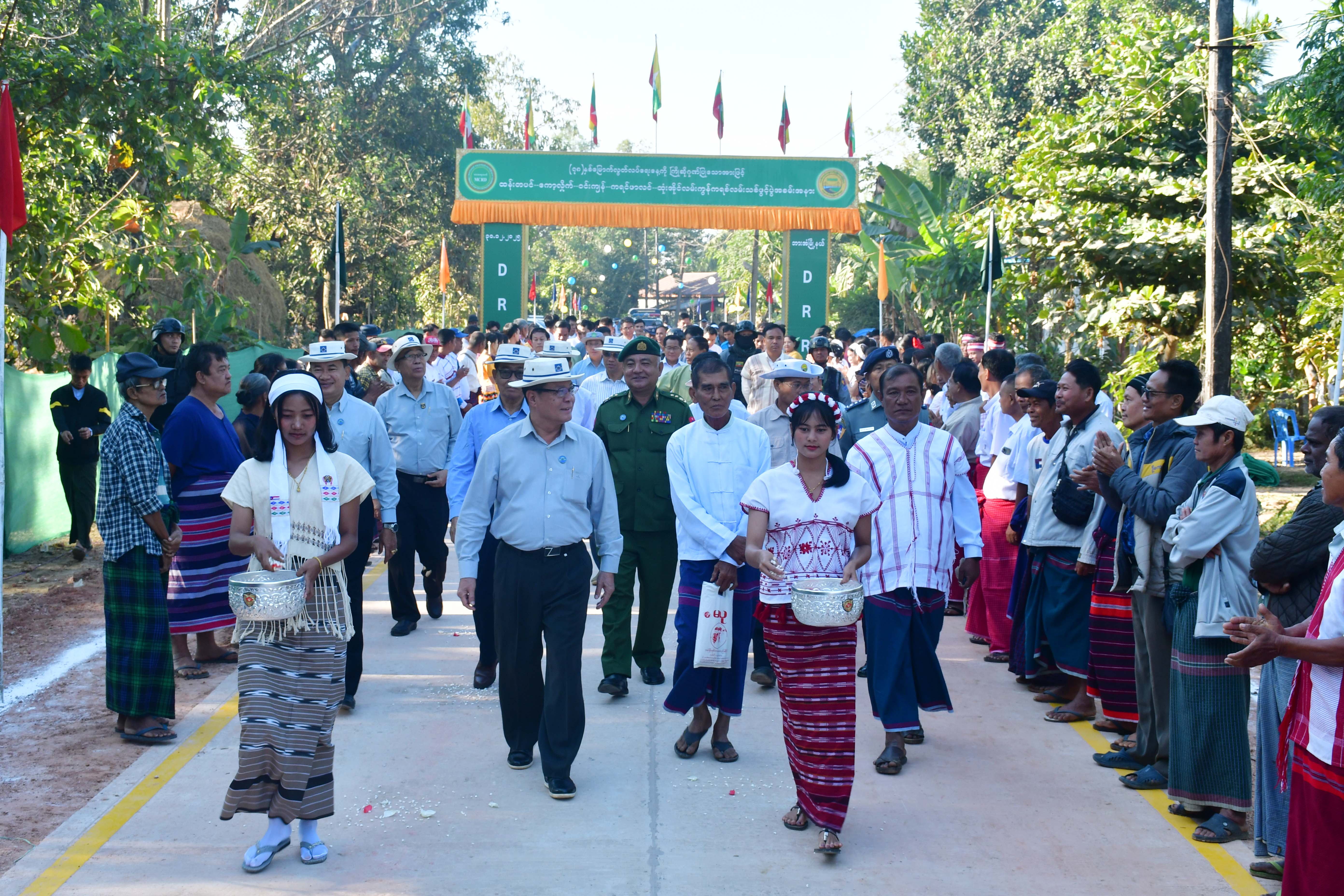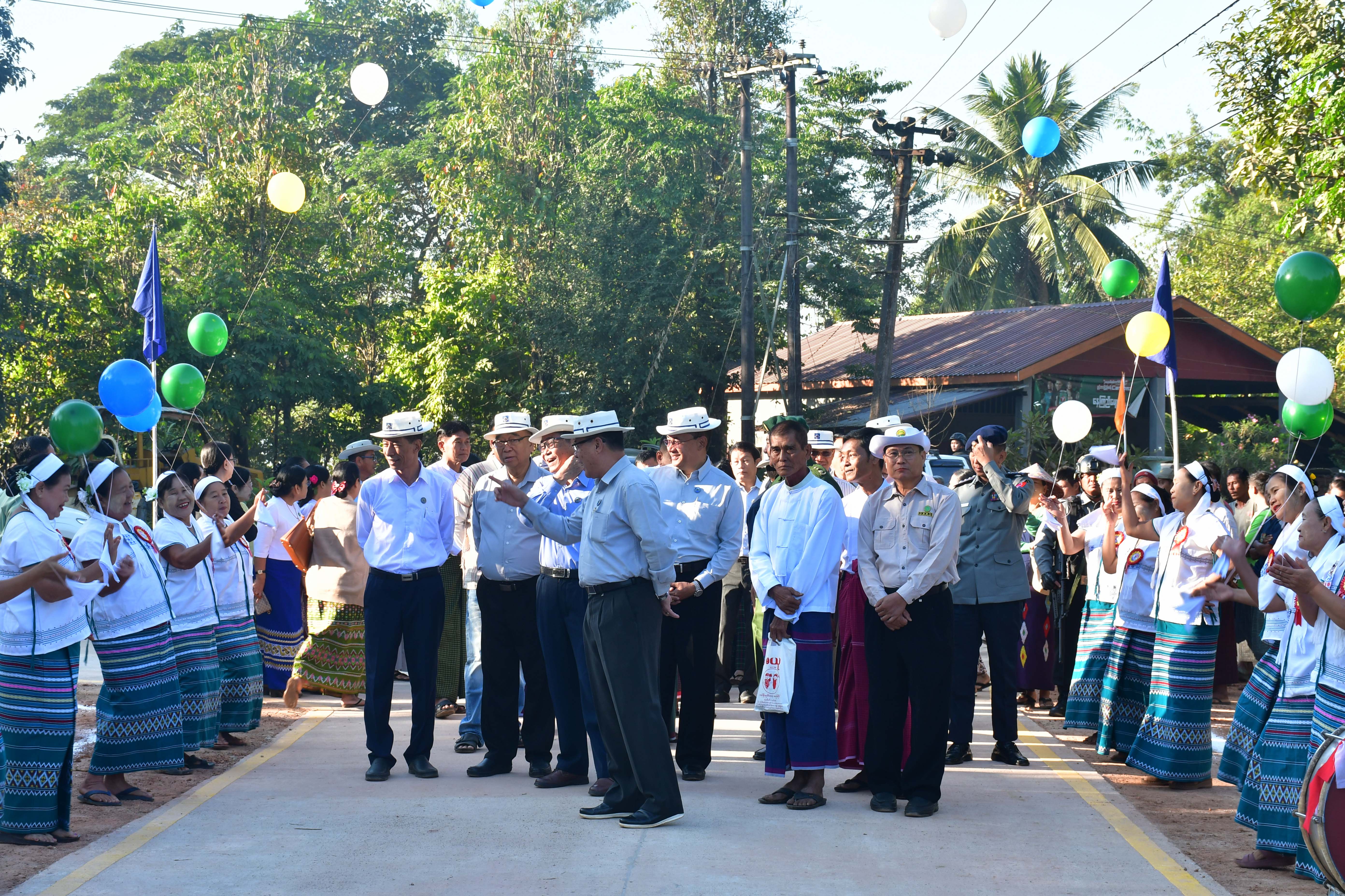 ထို့နောက် ပြည်နယ်ဝန်ကြီးချုပ်နှင့်တာဝန်ရှိသူများသည် ကွန်ကရစ်လမ်းသစ်ဖွင့်ပွဲသို့တက်ရောက်လာကြသော ယဉ်ကျေးမှုအဖွဲ့များနှင့်စုပေါင်းမှတ်တမ်းဓာတ်ပုံများရိုက်ကူး၍ ဂုဏ်ပြုဆုများပေးအပ်ချီးမြှင့်ကြပြီး (၁၄)ပေအကျယ် ကွန်ကရစ်လမ်းအရှည်(၆)ဖာလုံအား ဖြတ်သန်းကြည့်ရှုစစ်ဆေးခဲ့ကြကာ တာဝန်ရှိသူများအား လိုအပ်သည်များမှာကြား ခဲ့သည်။