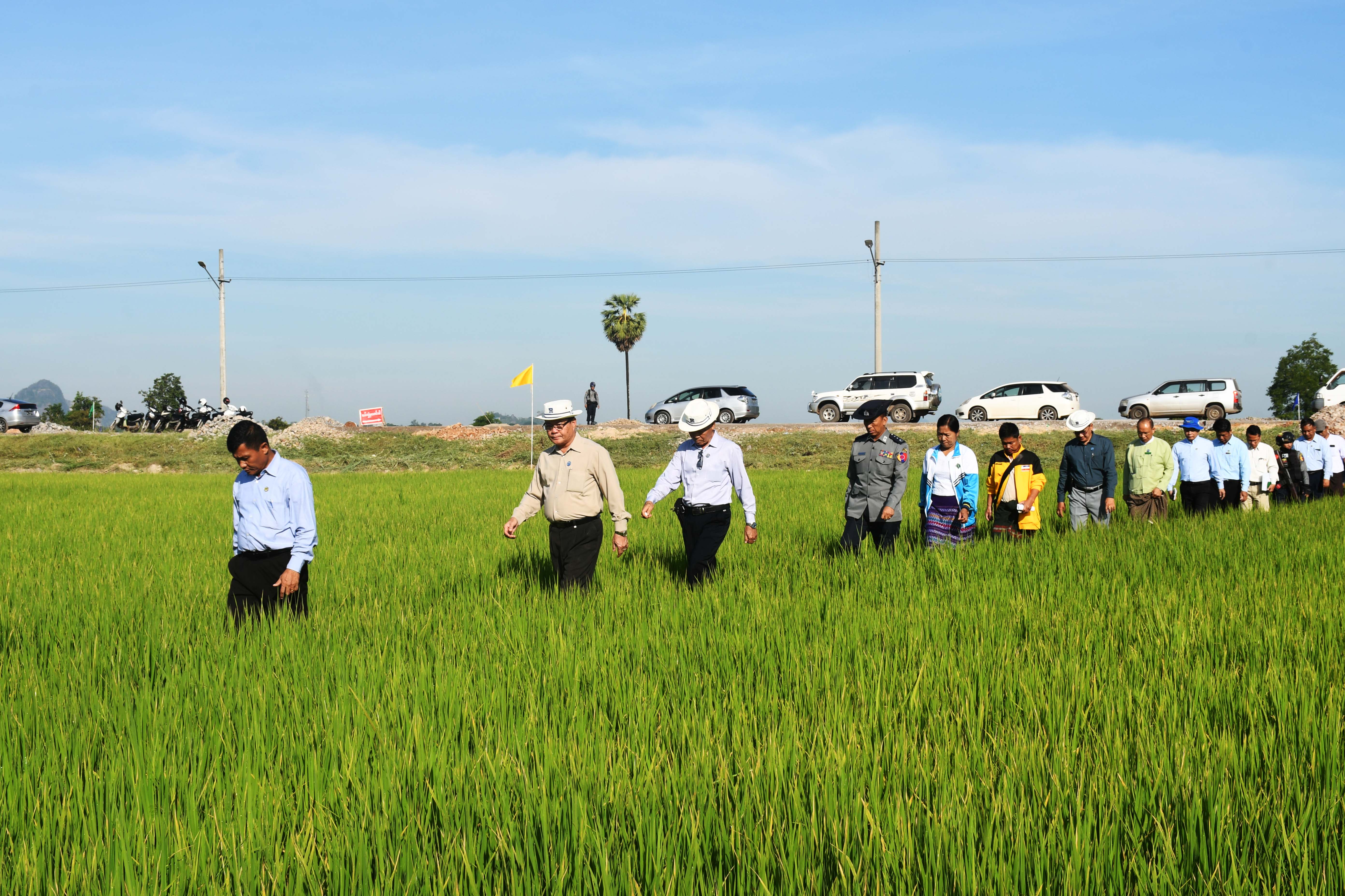 ယင်းနောက် ပြည်နယ်ဝန်ကြီးချုပ်နှင့်အဖွဲ့သည် ပြည်နယ်စိုက်ပျိုးရေးဦးစီးဌာန၏ မိုးစပါးအထွက်နှုန်းတိုးတက် ရေးနည်းပညာပေးစံပြစိုက်ခင်း(၁၅)ဧကအတွင်း တောင်သူများက ယူရီးယား၊ ပိုတက်နှင့် သဘာဝမြေဩဇာများ အချိုးကျ ရောစပ်ကြဲပက်ခြင်းကို ကြည့်ရှုအားပေးခဲ့ကြပြီး ရဲသာ(ကမော့ကစင်)ကျေးရွာအုပ်စု၊ ရဲသာကွင်းရှိ မိုးစပါးအထွက်နှုန်း တိုးတက်ရေးနည်းပညာပေးစံပြစိုက်ခင်း(၁၅)ဧကတို့ကို ကြည့်ရှုစစ်ဆေး၍ တာဝန်ရှိသူများအား လိုအပ်သည်များမှာကြား ခဲ့သည်။