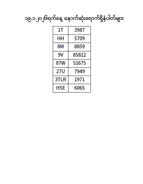 ၁၉.၁.၂၀၂၆ ရက်နေ့ထိ နောက်ဆုံးရောက်ရှိ နံပါတ်များ