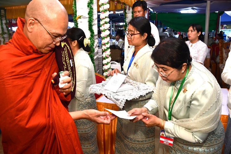 ၂၀၂၆ ခုနှစ် သာသနာတော်ဆိုင်ရာ ဘွဲ့တံဆိပ်တော်များ ဆက်ကပ်ပူဇော်ခြင်း မဟာမင်္ဂလာ အခမ်းအနားသို့ ပြည်ထောင်စုစာရင်းစစ်ချုပ် တက်ရောက်ခြင်းနှင့် ဝန်ထမ်းများနှင့်အတူ ဆွမ်းဆန်စိမ်းနှင့်လှူဖွယ်ဝတ္ထုပစ္စည်းများ လှူဒါန်းခြင်း