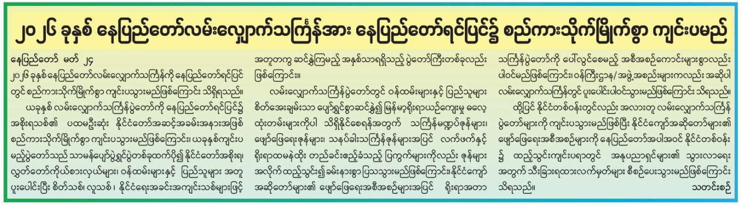 ၂၀၂၆ ခုနှစ် နေပြည်တော်လမ်းလျှောက်သင်္ကြန်အား နေပြည်တော်ရင်ပြင်၌ စည်ကားသိုက်မြိုက်စွာ ကျင်းပမည်