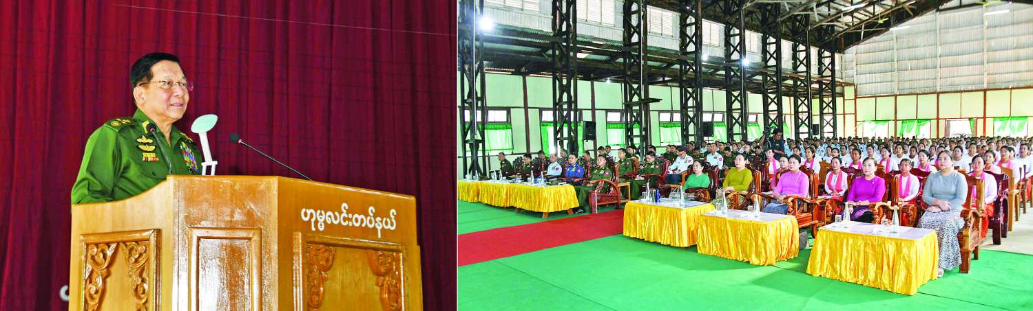 နိုင်ငံတော်လုံခြုံရေးနှင့်အေးချမ်းသာယာရေးကော်မရှင်ဥက္ကဋ္ဌ တပ်မတော်ကာကွယ်ရေးဦးစီးချုပ် ဗိုလ်ချုပ်မှူးကြီး မင်းအောင်လှိုင်သည် ယနေ့နံနက် ပိုင်းတွင် အနောက်မြောက်တိုင်းစစ်ဌာနချုပ် ဟုမ္မလင်းတပ်နယ်ရှိ အရာရှိ၊ စစ်သည် မိသားစုများအား တပ်နယ်ခန်းမ၌ တွေ့ဆုံအမှာစကားပြောကြားသည်။