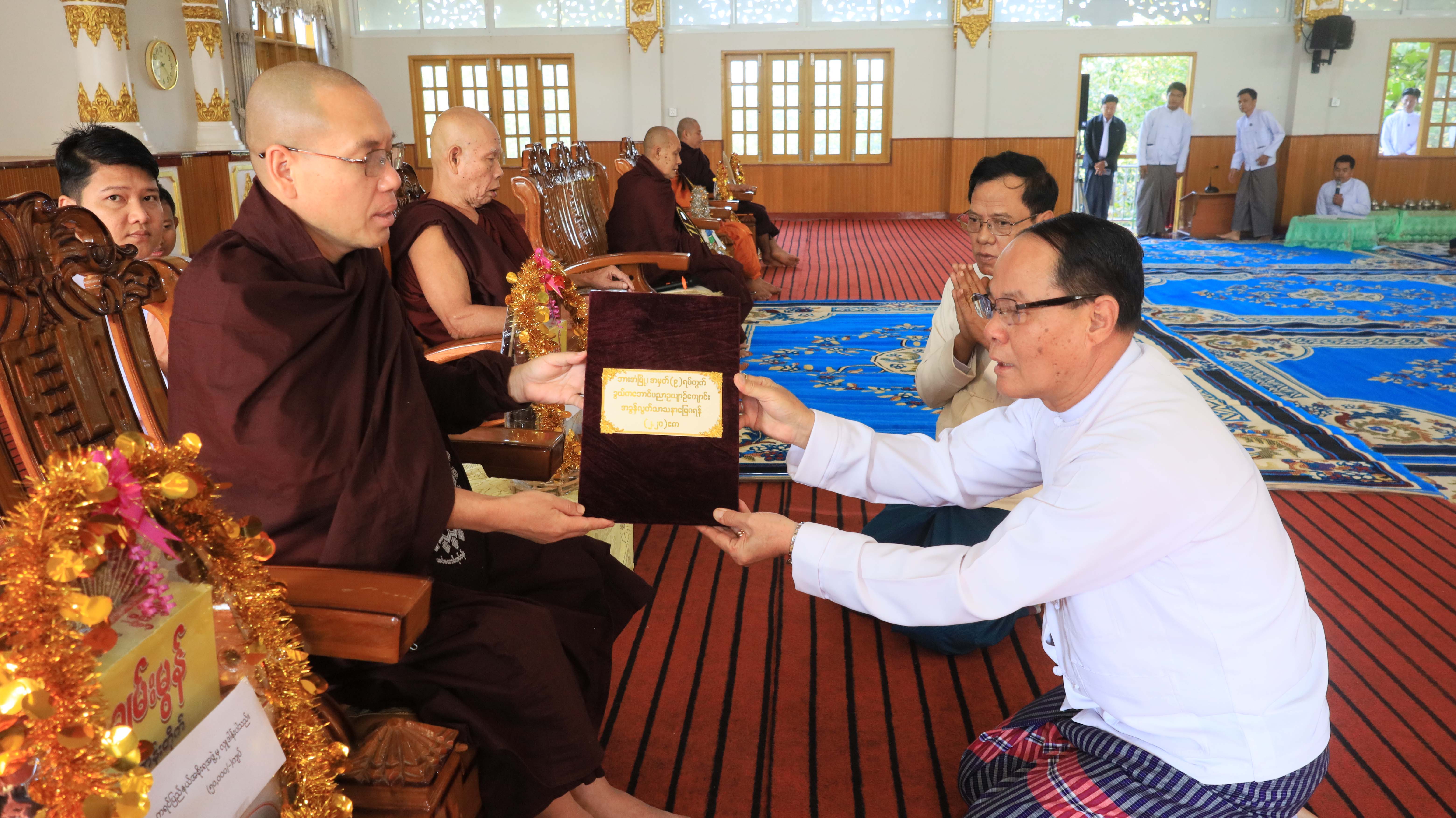 ကရင်ပြည်နယ်ဝန်ကြီးချုပ်ဦးစောမြင့်ဦး အခွန်လွတ်သာသနာ့မြေဂရန် ဆက်ကပ်လှူဒါန်း