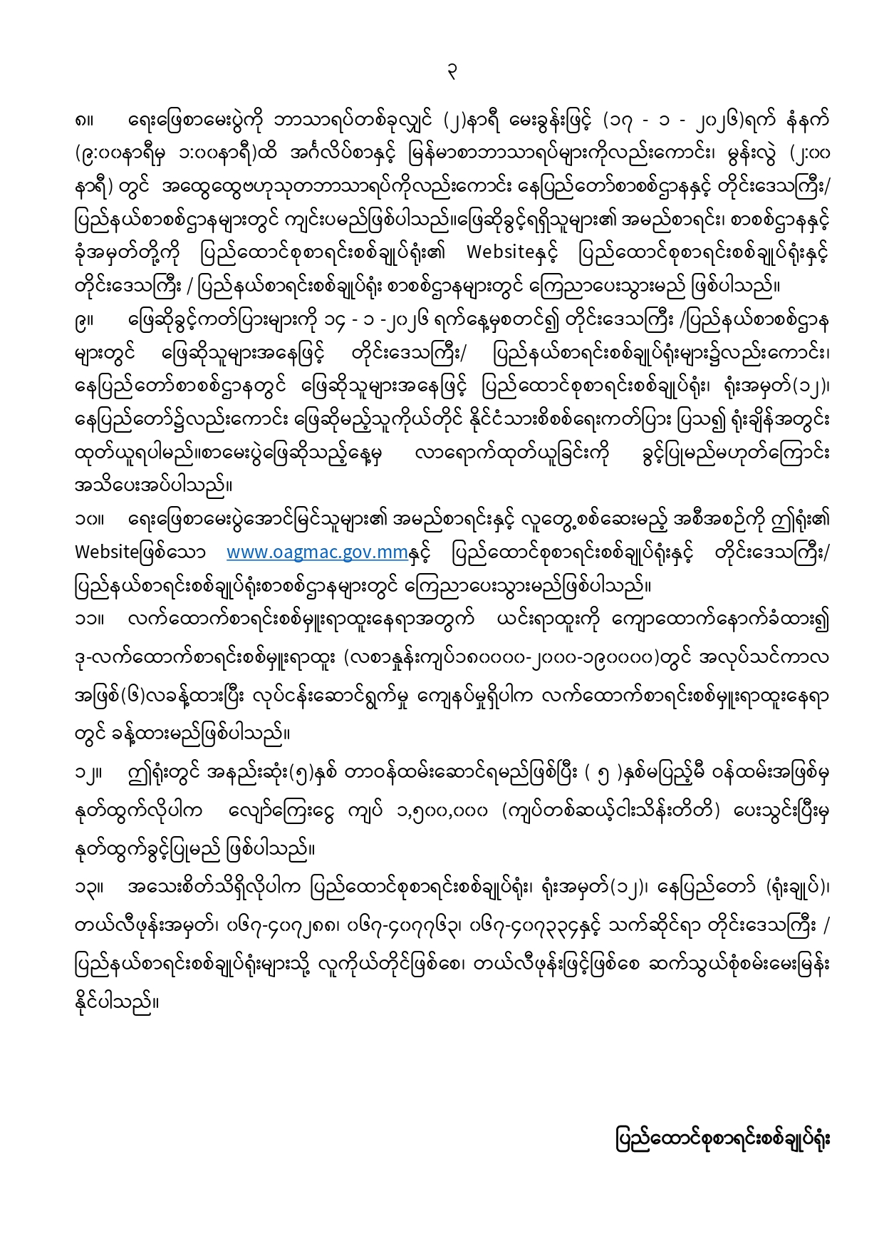ပြည်ထောင်စုစာရင်းစစ်ချုပ်ရုံး ၊ လက်ထောက်စာရင်းစစ်မှူး (လစာနှုန်း၁၉၈၀၀၀-၂၀၀၀-၂၀၈၀၀၀) လျှောက်လွှာခေါ်ယူခြင်း