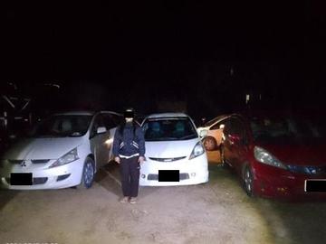 ထို့အတူ မွန်းလွဲ ၁ နာရီတွင် ကချင်ပြည်နယ်၊ မြစ်ကြီးနားမြို့နယ်ရဲတပ်ဖွဲ့မှူးရုံးမှ တပ်ဖွဲ့ဝင်များပါဝင်သော ပူးပေါင်းအဖွဲ့က မြစ်ကြီးနားမြို့နယ်၊ ပိတောက်မြိုင်ကျေးရွာနေ မဂျာမွန်းပန်(၂၉)နှစ်၏နေအိမ်ခြံဝင်းအတွင်း၌ လိုင်စင်မဲ့ မော်တော်ယာဉ်များထားရှိကာ အရောင်းအဝယ် ပြုလုပ်နေကြောင်း သတင်းအရ သွားရောက်စစ်ဆေးခဲ့ရာ အဆိုပါခြံဝင်းအတွင်း၌ အထောက်အထားတစ်စုံတစ်ရာ ပြသနိုင်ခြင်းမရှိသည့် လိုင်စင်မဲ့ BGO-3/1M-XXXX HONDA FIT မော်တော်ယာဉ် တစ်စီး၊ SHN-8/3N-XXXX HONDA FIT မော်တော်ယာဉ် တစ်စီး၊ MDY/1K-XXXX GRANDIS မော်တော်ယာဉ် တစ်စီးတို့နှင့်အတူ ဖမ်းဆီးရမိခဲ့သဖြင့် ဂျာမွန်းပန် အား ပလနနယ်မြေရဲစခန်း (ပ)၃၂/၂၀၂၆၊ ပို့ကုန်သွင်းကုန်ဥပဒေပုဒ်မ ၈ ဖြင့် လည်းကောင်း။