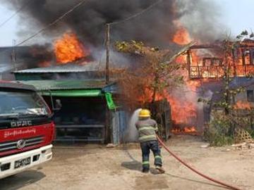 ၂၀၂၆ ခုနှစ်၊ မတ် ၂၇ ရက် မွန်းလွဲ ၁၂ နာရီ ၅၈ မိနစ်ခန့်က မန္တလေးတိုင်းဒေသကြီး၊ ပြည်ကြီးတံခွန်မြို့နယ်၊ (ဆ)ရပ်ကွက်၌ ဒေါ်ရီဌေး(၆၅)နှစ်၏ ၂၅ x ၂၀ ပေ၊ သွပ်မိုး၊ နံကပ်၊ ထရံကာ၊ အထပ်သားခင်း နှစ်ထပ် နေအိမ်အပေါ်ထပ်တွင် အင်ဗာတာ အပူလွန်ကဲရာမှတစ်ဆင့် ရှော့ဖြစ်ပြီး အနီးရှိ ထရံသို့ မီးကူးစက်လောင်ကျွမ်းမှုဖြစ်ပွားကြောင်း သတင်းရရှိသဖြင့် ပြည်ကြီးတံခွန်မြို့နယ် မီးသတ်စခန်းမှ မီးသတ်တပ်ဖွဲ့ဝင်များသည် မီးသတ်ယာဉ် ၁၀ စီးဖြင့် မီးငြှိမ်းသတ်ခဲ့ရာ မွန်းလွဲ ၁ နာရီ ၈ မိနစ်တွင် မီးငြိမ်းခဲ့ပါသည်။