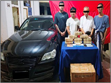 ၂၀၂၆ ခုနှစ်၊ ဖေဖော်ဝါရီ ၇ ရက် ညနေ ၆ နာရီ ၃၀ မိနစ်တွင် မူးယစ်ဆေးဝါးတားဆီး နှိမ်နင်းရေးရဲတပ်ဖွဲ့မှ တပ်ဖွဲ့ဝင်များပါဝင်သော ပူးပေါင်းအဖွဲ့သည် သတင်းအရ ရန်ကုန်တိုင်းဒေသကြီး၊ သင်္ဃန်းကျွန်းမြို့နယ်၊ (ဆ/က)ရပ်ကွက်၌ ကမာရွတ်မြို့နယ်၊ အမှတ်(၃)ရပ်ကွက်နေ အောင်ကိုကို(ခ)အောင်လေး(ခ)ကျော်မောင်မောင်(၃၀) နှစ် မောင်းနှင်ပြီး တာမွေမြို့နယ်၊ ပုသိမ်ညွန့်ရပ်ကွက်နေ ဇော်မျိုးဆွေ(၃၇)နှစ်တို့ လိုက်ပါလာသော TOYOTA MARK X အမျိုးအစား မော်တော်ယာဉ်အား ရပ်တန့်စစ် ဆေးရှာဖွေခဲ့ရာ ယာဉ်ပေါ်မှ စိတ်ကြွရူးသွပ်ဆေးပြား ၉၅,၀၀၀ ပြား (တစ်ပြားလျှင် ငွေကျပ် ၁,၀၀၀ နှုန်းဖြင့် ၎င်းဒေသကာလတန်ဖိုး ငွေကျပ် သိန်း ၉၅၀)အား သိမ်း ဆည်းရမိခဲ့ကြောင်း။