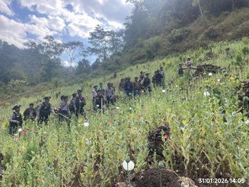 ၂၀၂၆ ခုနှစ်၊ ဇန်နဝါရီ ၃၁ ရက်က ရှမ်းပြည်နယ်အတွင်းရှိ မြို့နယ်အချို့၌ စုစုပေါင်း ဘိန်းစိုက်ခင်း ၂၇၄ ဧကခန့်အား ဖျက်ဆီးခဲ့ကြောင်း သိရသည်။