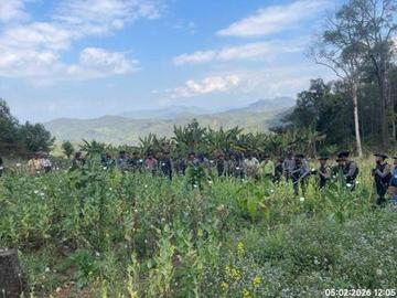 ၂၀၂၆ ခုနှစ်၊ ဖေဖော်ဝါရီ ၅ ရက်က ရှမ်းပြည်နယ်အတွင်းရှိ မြို့နယ်အချို့၌ စုစုပေါင်း ဘိန်းစိုက်ခင်း ၃၃၀ ဧကခန့်အား ဖျက်ဆီးခဲ့ကြောင်း သိရသည်။