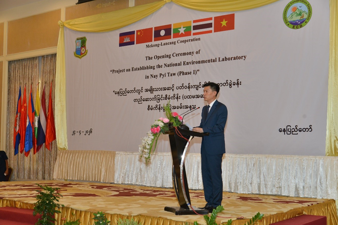 အခမ်းအနားတွင် ပြည်ထောင်စုဝန်ကြီးက “အမျိုးသားအဆင့် ပတ်ဝန်းကျင်ဆိုင်ရာ ဓာတ်ခွဲခန်း တည်ဆောက်ခြင်းစီမံကိန်း (ပထမအဆင့်)” သည် မြန်မာနိုင်ငံမှ မဲခေါင်-လန်ချန်း ပူးပေါင်း ဆောင်ရွက်မှု အထူးရန်ပုံငွေ (၂၀၂၅) ဖြင့် အကောင်အထည်ဖော်သည့် စီမံကိန်းဖြစ်ပါကြောင်း၊ ပတ်ဝန်းကျင်ညစ်ညမ်းမှုများကို ကာကွယ်နိုင်ရန်၊ လေထု၊ ရေထု၊ မြေထု အရည်အသွေးများကို ဆန်းစစ်အကဲဖြတ်နိုင်ရန်၊ ဝန်ထမ်းများ၏ လုပ်ငန်းစွမ်းဆောင်ရည်ကို မြှင့်တင်ပေးနိုင်ရန်နှင့် အမျိုးသားပတ်ဝန်းကျင်အရည်အသွေး စံချိန်စံညွှန်းများ ရေးဆွဲသတ်မှတ်နိုင်ရေး အခြေခံအချက် အလက်များ စုဆောင်းနိုင်ရန်အတွက် ရည်ရွယ်ပြီး စီမံကိန်းကို အကောင်အထည်ဖော် ဆောင်ရွက်ခြင်း ဖြစ်ပါကြောင်း ပြောကြားသည်။