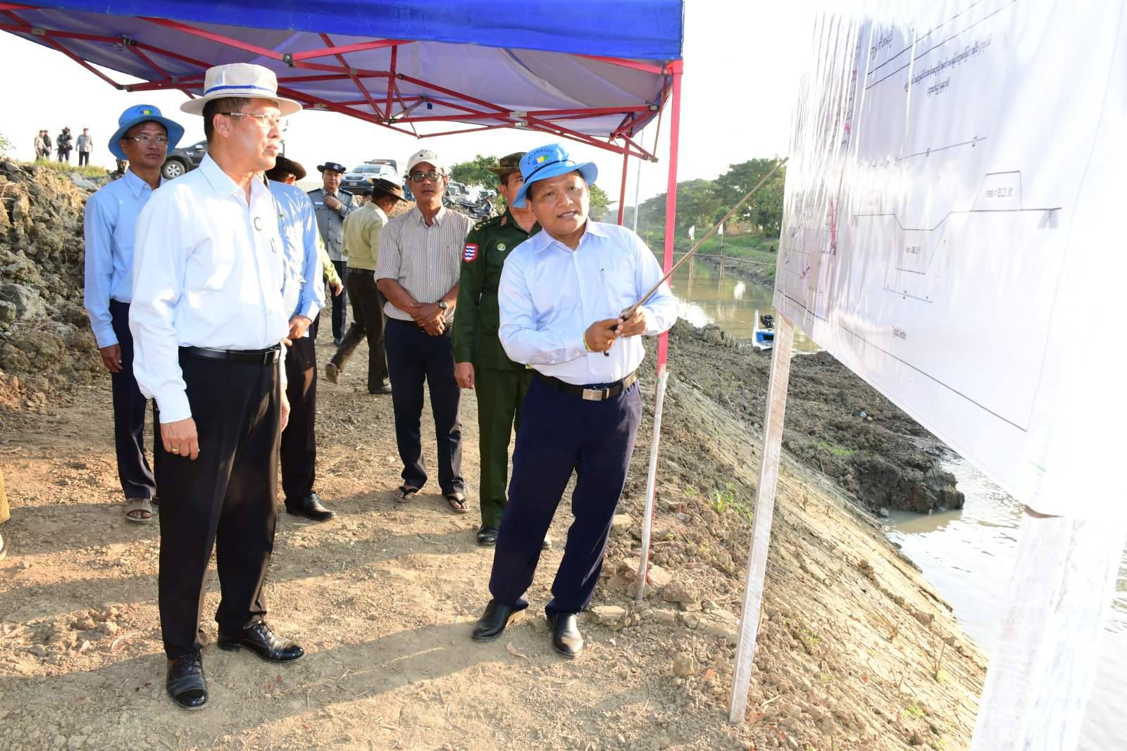 ဧရာဝတီတိုင်းဒေသကြီး ဝန်ကြီးချုပ်ဦးတင်မောင်ဝင်းသည် တာဝန်ရှိသူများနှင့်အတူ ယမန်နေ့ညနေပိုင်းက ကျုံပျော်ခရိုင်၊ ရေကြည်မြို့နယ်၊ ထန်းကျွန်းဆိပ်သာအုပ်စုအတွင်းရှိ အမှတ်(၁၈)မြောင်း အပိုင်း(၂)တူးဖော်ခြင်းလုပ်ငန်းအား ကြည့်ရှုစစ်ဆေးခဲ့သည်။ ဦးစွာ တိုင်းဒေသကြီးဝန်ကြီးချုပ်သည် ရေကြည်မြို့နယ်၊ ထန်းကျွန်းဆိပ်သာအုပ်စုအတွင်းရှိ အမှတ်(၁၈)မြောင်း အပိုင်း(၂)တူးဖော်ခြင်းလုပ်ငန်းအား ကြည့်ရှုစစ်ဆေးခဲ့ရာ ဆည်မြောင်းနှင့် ရေအသုံးချမှုစီမံခန့်ခွဲရေးဦးစီးဌာနက တာဝန်ရှိသူများက ထန်းကျွန်းဆိပ်သာအုပ်စုအတွင်းရှိ အမှတ်(၁၈)မြောင်းတူးဖော်ခြင်းလုပ်ငန်း အပိုင်း(၁) အလျား(၁.၅)မိုင်၊ အကျယ်(၃၆)ပေ၊ ပျှမ်းမျှအနက်(၇)ပေအား မိုးရာသီကာလမတိုင်မီအတွင်း ပြီးစီးအောင်ဆောင်ရွက်ပေးခဲ့သဖြင့် လယ်မြေဧက(၂၇၀၀)ကျော်အား ရေကြီးနစ်မြှုပ်မှုလျော့နည်းသက်သာစေသည့်အပြင် ရေကျနောက်စိုက်စပါးများ စိုက်ပျိုးချိန်ပိုမိုစောလျင်လာစေပြီး သီးထပ်စိုက်ပျိုးနိုင်သည့်အခြေအနေများ၊ အမှတ်(၁၈)မြောင်းတူးဖော်ခြင်းလုပ်ငန်း အပိုင်း(၂)အား အလျား(၂)မိုင်၊ အကျယ်(၃၆)ပေ၊ ပျှမ်းမျှအနက်(၇)ပေအား ဆက်လက်ဆောင်ရွက်နေခြင်းဖြစ်ကာ မိုးစပါးစိုက်ဧက (၅၀၀၀)ကျော်အား ရေကြီးနစ်မြှုပ်မှုသက်သာစေခြင်း၊ ရေကျနောက်စိုက်စပါးများ စိုက်ပျိုးချိန်ပိုမိုစောလျင်လာစေပြီး နွေစပါးစိုက်ဧက(၁၈၀၀)ကျော်အား အောင်ရေရရှိစေနိုင်မည့်အခြေအနေများအား ရှင်းလင်းတင်ပြရာ တိုင်းဒေသကြီးဝန်ကြီးချုပ်က လုပ်ငန်းများသတ်မှတ်ကာလအတွင်းပြီးစီးစေရေး၊ ရေမြောင်းတူးဖော်ပြီးပါက မြောင်းတာဘောင်များ၊ မြေလွတ်များတွင် ရာသီအလိုက် သီးနှံများစိုက်ပျိုးနိုင်ရေး ဆောင်ရွက်ရန်မှာကြားခဲ့သည်။