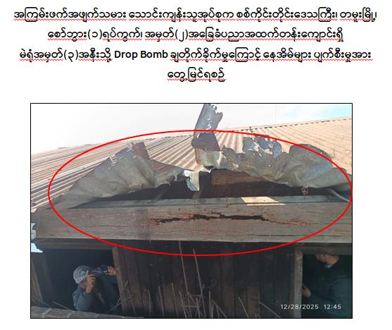 အလားတူ ပါတီစုံဒီမိုကရေစီအထွေထွေရွေးကောက်ပွဲအပိုင်း(၃) ကျင်းပသည့် ၂၀၂၆ ခုနှစ်၊ ဇန်နဝါရီ ၂၅ ရက်တွင် အကြမ်းဖက်အဖျက်သမား သောင်းကျန်းသူအုပ်စုသည် ကချင်ပြည်နယ်၊ ဖားကန့်မြို့ရှိ အိုးအိမ် အိမ်ရာနှင့် နန့်ယားရွာလယ်တံတား နေရာများသို့ ၆၀ မမ စိန်ပြောင်းများ၊ ရှော့တိုက်ဒုံးများဖြင့် ပစ်ခတ်တိုက်ခိုက်ခြင်း၊ တနင်္သာရီတိုင်းဒေသကြီး လောင်းလုံမြို့၊ မြို့မရဲစခန်းအား Drone များ အသုံးပြု၍ Drop Bomb ချတိုက်ခိုက်ခြင်း၊ စစ်ကိုင်းတိုင်းဒေသကြီး ကနီမြို့နှင့် ဆားလင်းကြီးမြို့များအတွင်းသို့ Drop Bomb များ၊ လက်လုပ်စိန်ပြောင်းများ၊ လက်နက်ငယ်များဖြင့် ပစ်ခတ်တိုက်ခိုက်ခြင်း၊ မန္တလေးတိုင်းဒေသကြီး တောင်သာမြို့နယ်အတွင်းရှိ မင်းကန်ဓာတ်ငွေ့ ပိုက်လိုင်းနေရာ၊ ရုံးစည်ကြီးကျေးရွာ၊ မလှိုင်မြို့နယ်အတွင်းရှိ အခြေခံပညာအထက်တန်း ကျောင်း(ထန်းတော)၊ မြင်းခြံမြို့နယ်အတွင်းရှိ ဌာနဆိုင်ရာ အဆောက်အအုံများနှင့် လယ်သစ်ကျေးရွာတို့အား Drop Bomb ချတိုက်ခိုက်ခြင်း၊ FPV Suicide Drone များဖြင့် တိုက်ခိုက်ခြင်း၊ အသံမိုင်းများဖြင့် ဖောက်ခွဲတိုက်ခိုက်ခြင်း၊ လက်နက်ကြီး၊ လက်နက်ငယ်များဖြင့် ပစ်ခတ်တိုက်ခိုက်ခြင်း၊ ပဲခူးတိုင်းဒေသကြီး၊ ဖြူးမြို့နယ် ညောင်ပင်သာကျေးရွာ၊ ကျောက်တံခါးမြို့နယ် သမင်အင်းကုန်းကျေးရွာ၊ ဇေယျဝတီမြို့နယ် ညောင်ခြေထောက်ကျေးရွာနှင့် ရေတာရှည်မြို့နယ်တို့အား Drop Bomb ချတိုက်ခိုက်ခြင်း၊ အသံမိုင်းများဖြင့် ဖောက်ခွဲတိုက်ခိုက်ခြင်း၊ လက်နက်ငယ်များဖြင့် ပစ်ခတ်တိုက်ခိုက်ခြင်း၊ ရှော့တိုက်ဒုံးများဖြင့် ပစ်ခတ်တိုက်ခိုက်ခြင်း စသည့် အကြမ်းဖက်လုပ်ရပ်များကို အပိုင်း(၃) မဲဆန္ဒနယ် ၆၁ မြို့နယ်အနက် ၁၁ မြို့နယ်တို့၌ လုပ်ဆောင်ခဲ့ကြရာ အပစ်မဲ့အရပ်သားပြည်သူ တစ်ဦး ထိခိုက်ဒဏ်ရာရရှိခဲ့သည်။