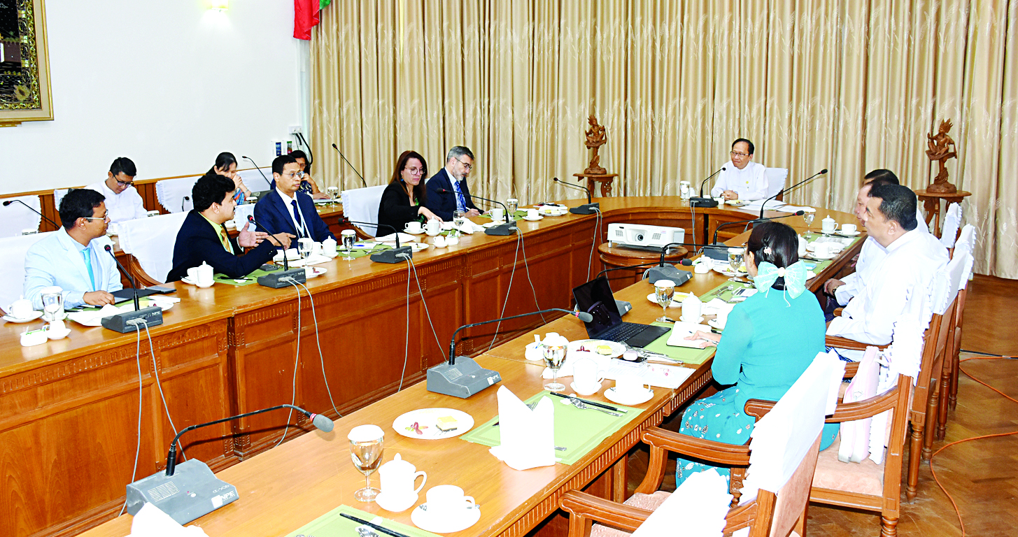 ဆွစ်ဇာလန်နိုင်ငံ ဂျီနီဗာမြို့အခြေစိုက် (Global Alliance for Vaccines and Immunization- GAVI) မှ Senior Country Manager ၊ Mr. Ricard Lacort Monte ဦးဆောင်သောအဖွဲ့နှင့် ရန်ကုန်မြို့ရှိ ကမ္ဘာ့ကျန်းမာရေးအဖွဲ့(WHO)၊ ကုလသမဂ္ဂကလေးများ ရန်ပုံငွေအဖွဲ့ (UNICEF)တို့မှ တာဝန်ရှိသူများသည် ယနေ့နံနက်ပိုင်းတွင် ကျန်းမာရေးဝန်ကြီးဌာန ပြည်ထောင်စုဝန်ကြီး ဒေါက်တာသက်ခိုင်ဝင်းအား နေပြည်တော်ကျန်းမာရေးဝန်ကြီးဌာန ရုံးအမှတ်(၄) အစည်းအဝေးခန်းမ၌ လာရောက်တွေ့ဆုံဆွေးနွေးသည်။