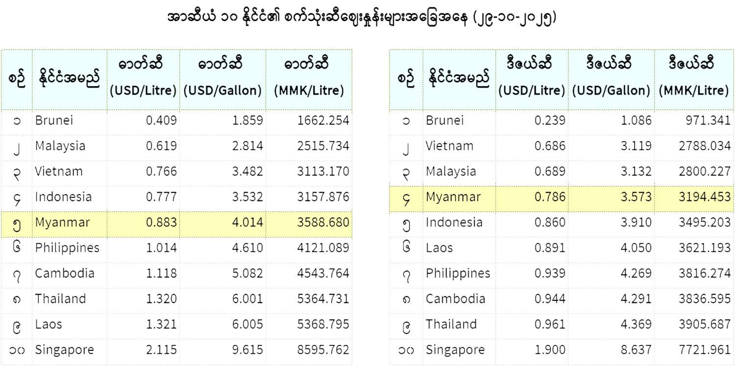 စွမ်းအင်ဝန်ကြီးဌာနသည် ပြည်တွင်းမှထုတ်ယူရရှိသည့် ရေနံစိမ်းများအား ဌာနကြီးကြပ်မှုအောက်ရှိ ရေနံချက်စက်ရုံများတွင်ချက်လုပ် ဖြန့်ဖြူးပေးလျက်ရှိသော်လည်း ပြည်တွင်းထုတ်လုပ်မှုမှာ နိုင်ငံအတွင်း လိုအပ်ချက်၏ ၃ ရာခိုင်နှုန်းခန့်သာရှိသည့်အတွက် ထပ်မံလိုအပ်သည့် စက်သုံးဆီအများစုကို နိုင်ငံခြားငွေဖြင့် ပြည်ပမှဝယ်ယူတင် သွင်းရလျက်ရှိသည်။