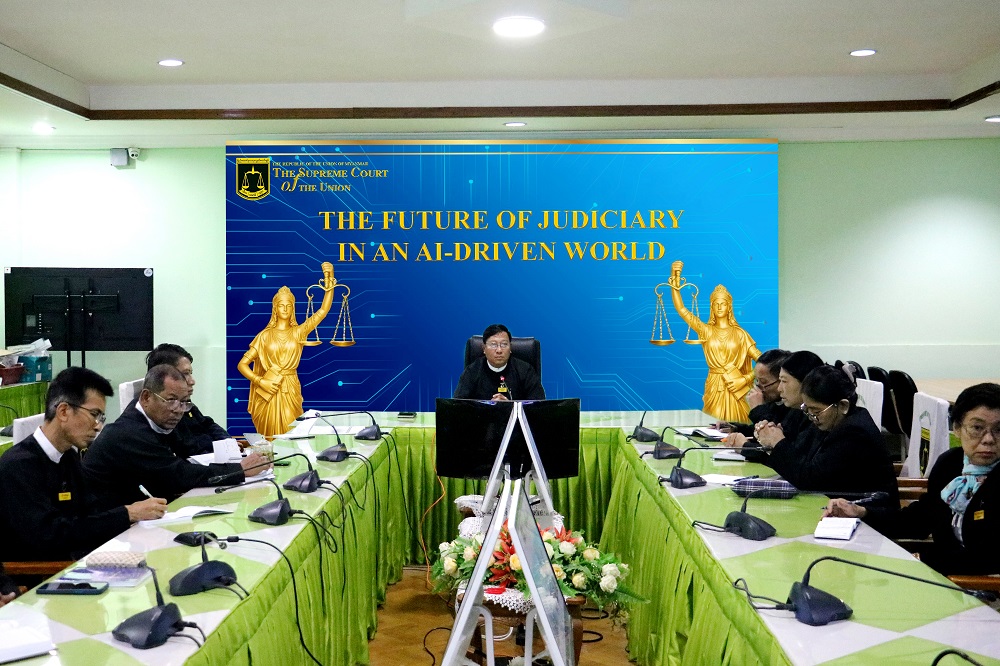 တရားသူကြီးများ၊ တရားရေးဝန်ထမ်းများအနေဖြင့် AI နည်းပညာကို ပိုမိုသိရှိစေရန် ရည်ရွယ်၍ “The Future of Judiciary in an AI-Driven World” ခေါင်းစဉ်ဖြင့် စကားဝိုင်းဆွေးနွေးပွဲကို ပြည်ထောင်စုတရားလွှတ်တော်ချုပ်ရုံး၊ e-Government ဌာနက ဦးဆောင်၍ ၂၀၂၆ ခုနှစ်၊ ဇန်နဝါရီလ ၁၆ ရက် နံနက် ၀၉:၀၀ နာရီတွင် ပြည်ထောင်စုတရား လွှတ်တော်ချုပ် အစည်းအဝေးခန်းမ၌ Video Conference စနစ်ဖြင့် ကျင်းပပြုလုပ်ရာ ညွှန်ကြားရေးမှူးချုပ် ဦးဇော်မင်းအောင် တက်ရောက်၍ အဖွင့်အမှာစကားပြောကြားသည်။