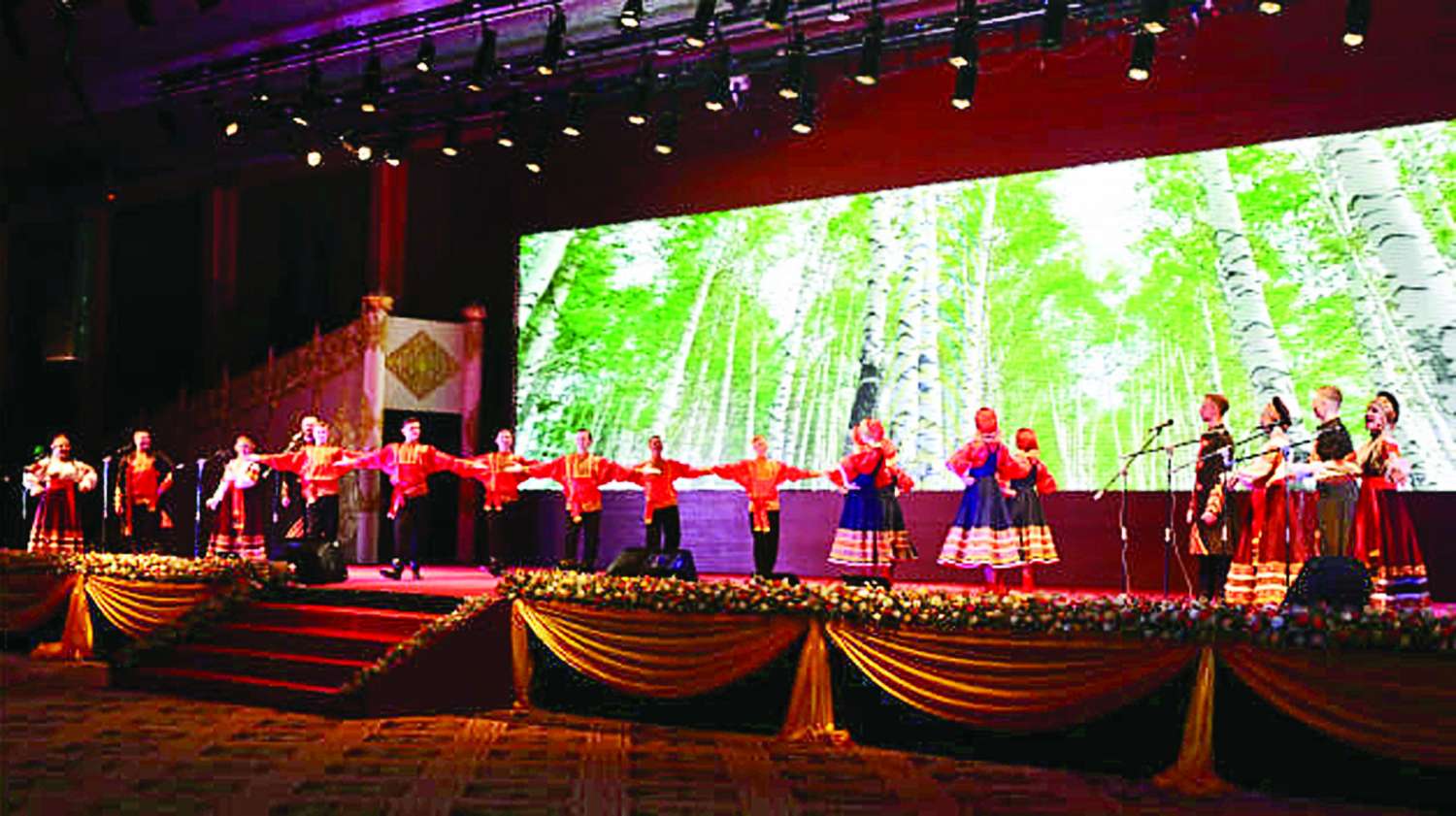 ရုရှားဖက်ဒရေးရှင်းနိုင်ငံ နိုဗိုစီဗစ်ဒေသမှ နိုဗိုစီဗစ် “Chaldony” State Song and Dance Ensemble အဖွဲ့မှ “မဟာရုရှားနှင့် ဆိုက်ဘေးရီးယား” အမည်ရသည့် ပဒေသာကပွဲကို ယနေ့မွန်းလွဲပိုင်းတွင် နေပြည်တော်ရှိ မြန်မာအပြည်ပြည်ဆိုင်ရာကွန်ဗင်းရှင်းဗဟိုဌာန (၁) (MICC-1) ၌ ကျင်းပပြုလုပ်ရာ ပြည်ထောင်စုသမ္မတမြန်မာနိုင်ငံတော်ယာယီသမ္မတ နိုင်ငံတော်လုံခြုံရေးနှင့်အေးချမ်းသာယာရေးကော်မရှင်ဥက္ကဋ္ဌ ဗိုလ်ချုပ်မှူးကြီး မင်းအောင်လှိုင် တက်ရောက်ကြည့်ရှုအားပေးသည်။