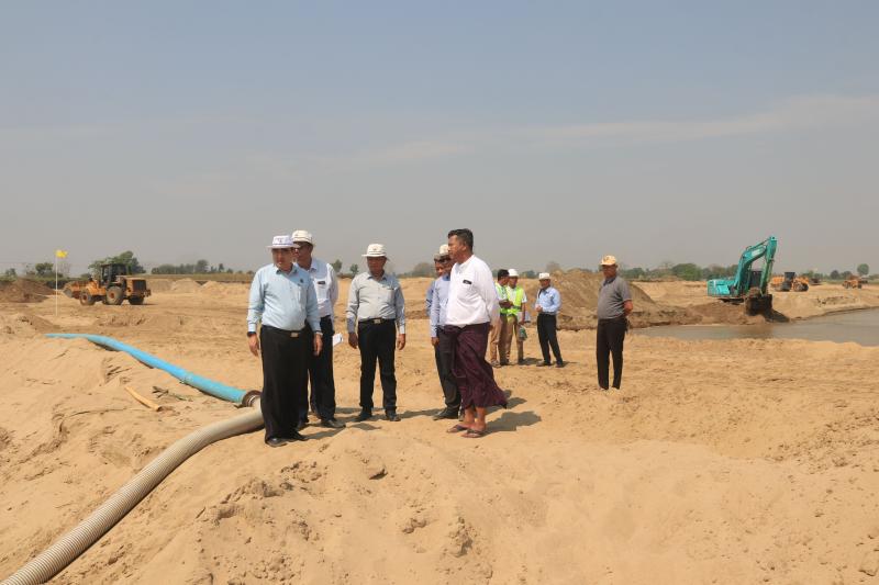 ဒုတိယဝန်ကြီး ဦးအောင်ကျော်ထွန်း ဆင်သေချောင်းရေကြီးရေလျှံမှု လျော့ပါးရေး သောင်တူးလုပ်ငန်း၊ ရေကာတည်ဆောက်ခြင်း လုပ်ငန်းများနှင့် စစ်တောင်းမြစ် ရေစီးရေလာ ကောင်းမွန်စေရေး သောင်တူးလုပ်ငန်း ဆောင်ရွက်နေမှုများအား ကြည့်ရှုစစ်ဆေး
