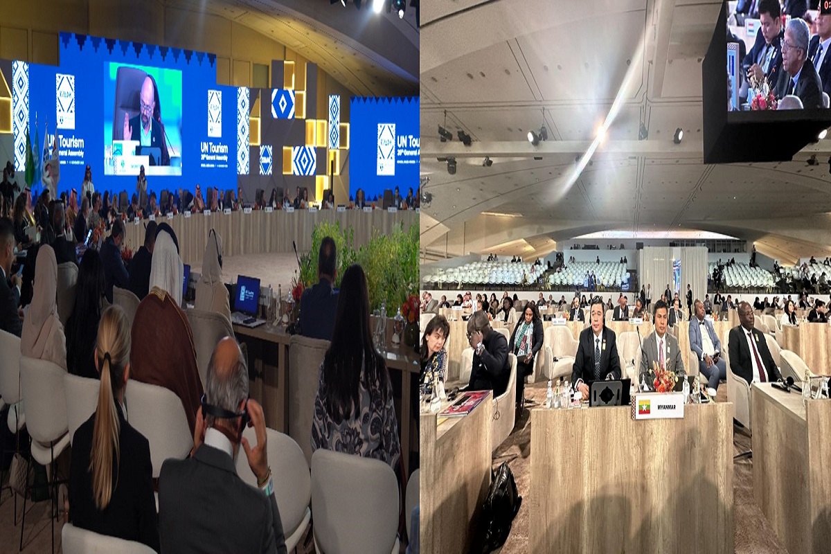 ဆော်ဒီအာရေဗျနိုင်ငံ၊ ခရီးသွားလာရေးဝန်ကြီးနှင့် ကုလသမဂ္ဂခရီးသွားလုပ်ငန်းအဖွဲ့၊ အတွင်းရေးမှူးချုပ်တို့၏ ဖိတ်ကြားချက်အရ ဆော်ဒီအာရေဗျနိုင်ငံ၊ ရိရတ်ဒ်မြို့ရှိ (မန်ဒရင်း အော်ရီ ယန်တယ် အယ်ဖဆာလိယဲ့) ဟိုတယ်၌ နိုဝင်ဘာလ ၇ ရက်မှ ၁၀ ရက်အထိ ကျင်းပခဲ့သည့် ကုလသမဂ္ဂခရီးသွားလုပ်ငန်းအဖွဲ့ (UN Tourism) ၏ (၂၆) ကြိမ်မြောက် ကုလသမဂ္ဂခရီးသွား လုပ်ငန်းအဖွဲ့အထွေထွေညီလာခံ (UN Tourism General Assembly) နှင့်ဆက်စပ် အစည်းအဝေး များသို့ မြန်မာနိုင်ငံမှ ဟိုတယ်နှင့်ခရီးသွားလာရေးဝန်ကြီးဌာန၊ ဒုတိယဝန်ကြီး ဦးဖြိုးဇော်စိုး ဦးဆောင်၍ မြန်မာနိုင်ငံခရီးသွားလုပ်ငန်းအဖွဲ့ချုပ်၊ မြန်မာနိုင်ငံဟိုတယ် ဆိုင်ရာလုပ်ငန်းရှင်များ အသင်း၊ မြန်မာနိုင်ငံခရီးသွားလုပ်ငန်းရှင်များအသင်းနှင့် မြန်မာနိုင်ငံခရီးသွား လုပ်ငန်းစျေးကွက် မြှင့်တင်ရေးအသင်းတို့မှ တာဝန်ရှိသူများ ပါဝင်တက်ရောက်ခဲ့ပါသည်။