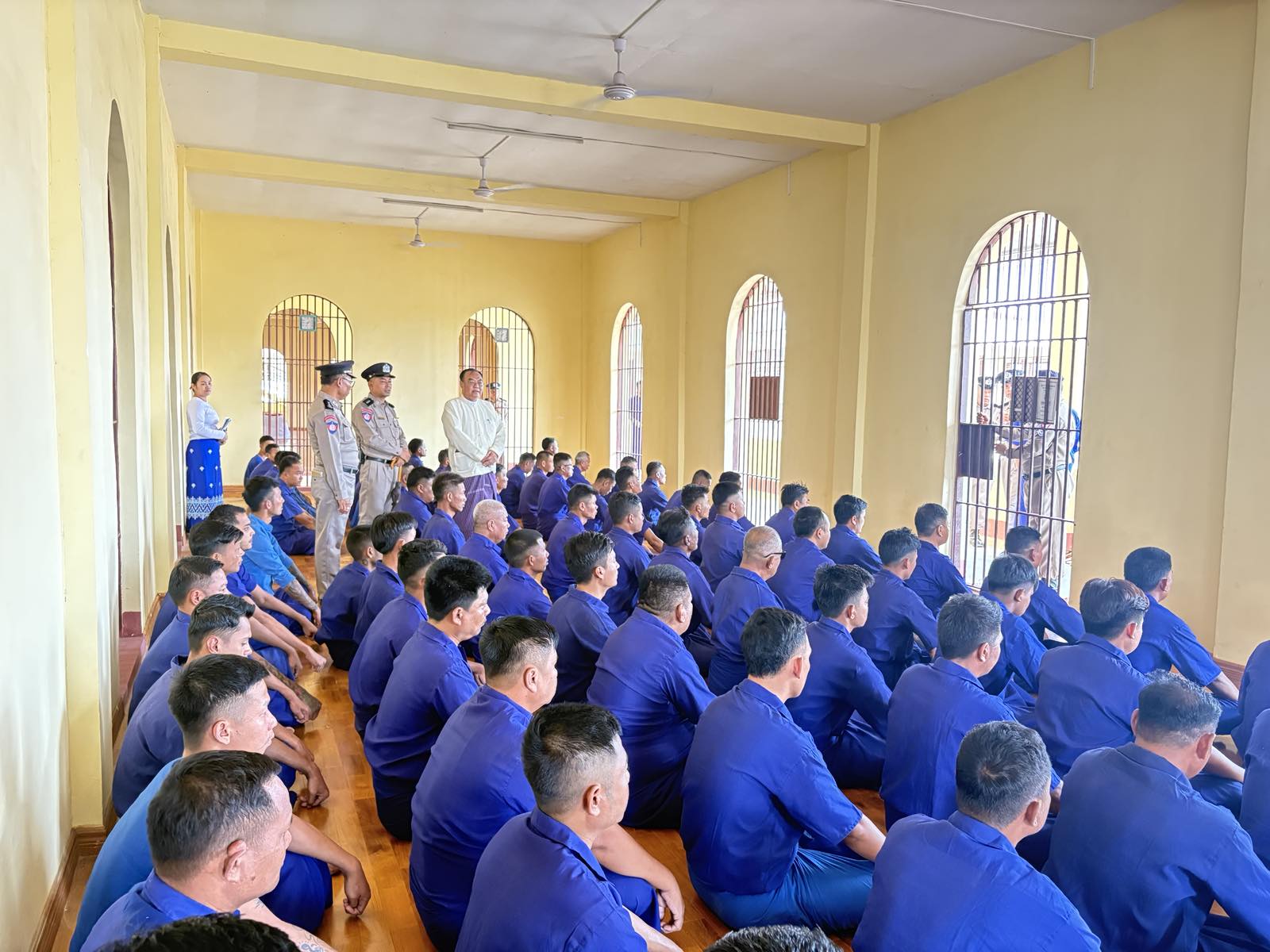 ကြည့်ရှုစစ်ဆေးရေးအဖွဲ့သည် အချုပ်သား/အချုပ်သူများ၏ အိပ်ဆောင်များ၊ ဆေးပေးခန်း၊ စာကြည့်တိုက်၊ စားဖိုကြီး၊ ရိက္ခာဂိုထောင်၊ ရေသန့်စက်၊ သုံးရေ/ ချိုးရေကန်များနှင့် အတွင်း/အပြင် မိလ္လာများ သန့်ရှင်းမှု ရှိ/မရှိနှင့် ထောင်ဝင်စာ တွေ့ဆုံနေမှု အခြေအနေ၊ အကျဉ်းသား/သူ၊ အချုပ်သား/သူတို့ နေ့လယ်စာ သုံးဆောင်နေမှုအခြေအနေတို့ကို လှည့်လည်ကြည့်ရှုစစ်ဆေးခဲ့ပြီး ယခင်စစ်ဆေးစဉ်က တွေ့ရှိချက်အပေါ် အကြံပြုချက်များကို ဆောင်ရွက်ပြီးစီးမှုများကိုလည်း ကြည့်ရှုစစ်ဆေးခဲ့ပြီး အချုပ်သားများ ဖတ်ရှုလေ့လာနိုင်ရန်အတွက် ဗဟုသုတရဖွယ်စာအုပ် စာပေအုပ်ရေ (၅၀) အုပ်ကို ကော်မရှင်မှ ပေးအပ်လှူဒါန်းခဲ့ပါသည်။