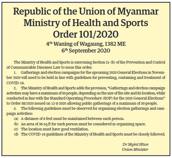 Republic of the Union of Myanmar Ministry of Health and Sports Order No. 101/2020