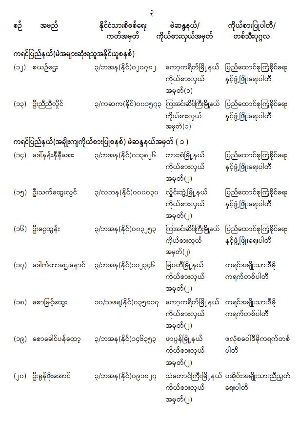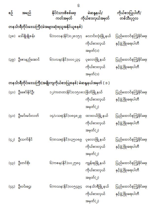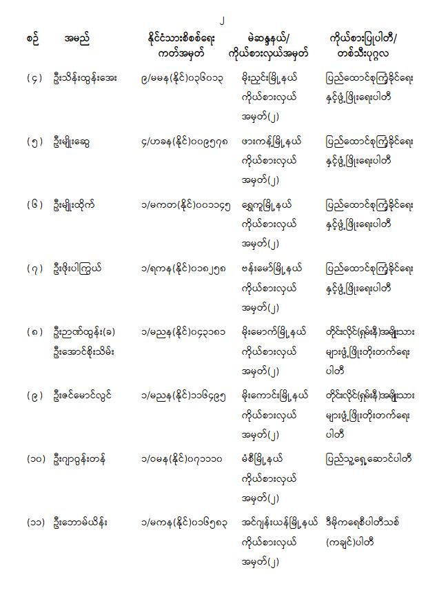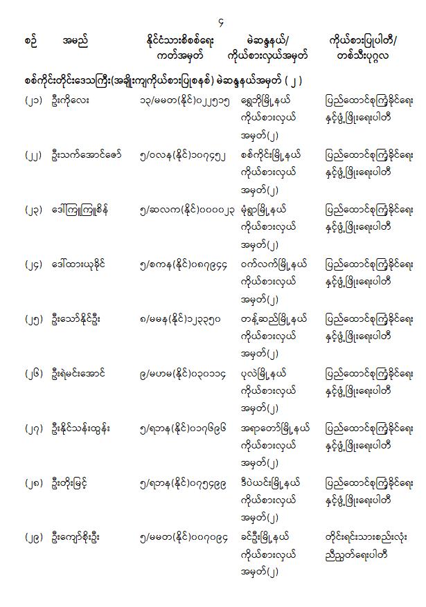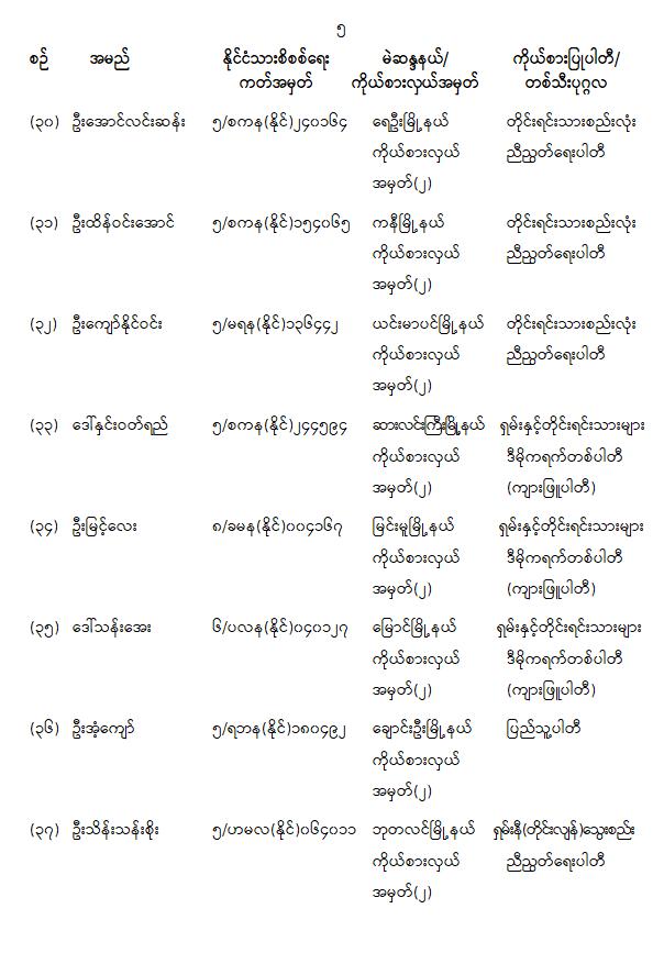တိုင်းဒေသကြီးလွှတ်တော် သို့မဟုတ် ပြည်နယ်လွှတ်တော်ကိုယ်စားလှယ်အဖြစ် ရွေးကောက်တင်မြှောက်ခံရသူများ အမည်စာရင်းကြေညာခြင်း