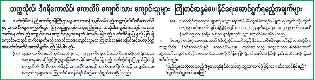 တက္ကသိုလ်၊ ဒီဂရီကောလိပ်၊ ကောလိပ် ကျောင်းသား ကျောင်းသူများ ကြိုတင်ဆန္ဒမဲပေးနိုင်ရေးဆောင်ရွက်ရမည့် အချက်များ
