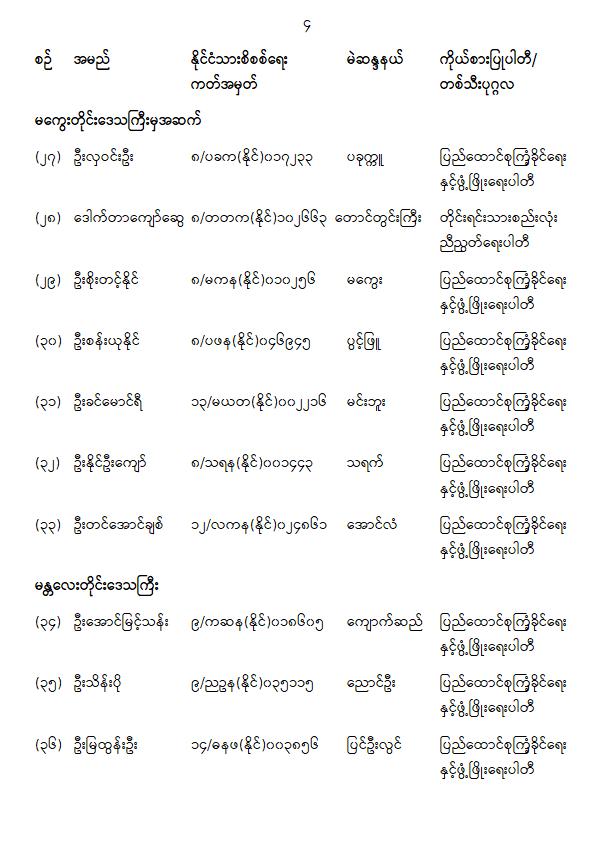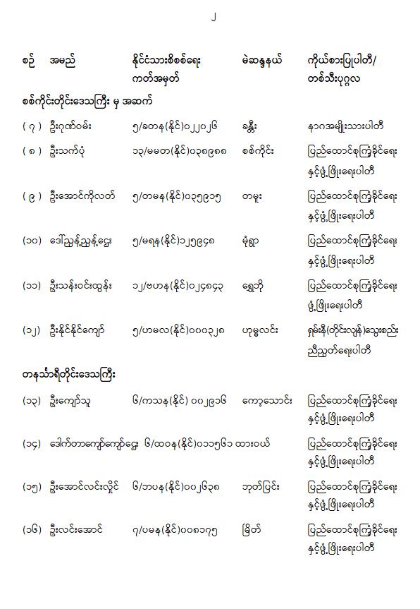 ပြည်သူ့လွှတ်တော်ကိုယ်စားလှယ်အဖြစ် ရွေးကောက်တင်မြှောက်ခံရသူများ အမည်စာရင်းကြေညာခြင်း