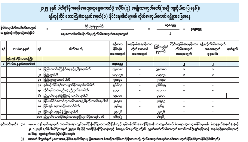 ၂၀၂၅ ခုနှစ် ပါတီစုံဒီမိုကရေစီအထွေထွေရွေးကောက်ပွဲ အပိုင်း(၃) အမျိုးသားလွှတ်တော်(အချိုးကျကိုယ်စားပြုစနစ်)၊ ရန်ကုန်တိုင်းဒေသကြီးမဲဆန္ဒနယ်အမှတ် (၁) နိုင်ငံရေးပါတီများ၏ ကိုယ်စားလှယ်လောင်းရရှိမှုအခြေအနေ