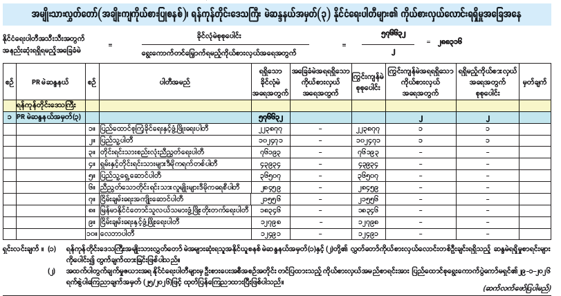 အမျိုးသားလွှတ်တော်(အချိုးကျကိုယ်စားပြုစနစ်)၊ ရန်ကုန်တိုင်းဒေသကြီး မဲဆန္ဒနယ်အမှတ် (၂) နိုင်ငံရေးပါတီများ၏ ကိုယ်စားလှယ်လောင်းရရှိမှုအခြေအနေ