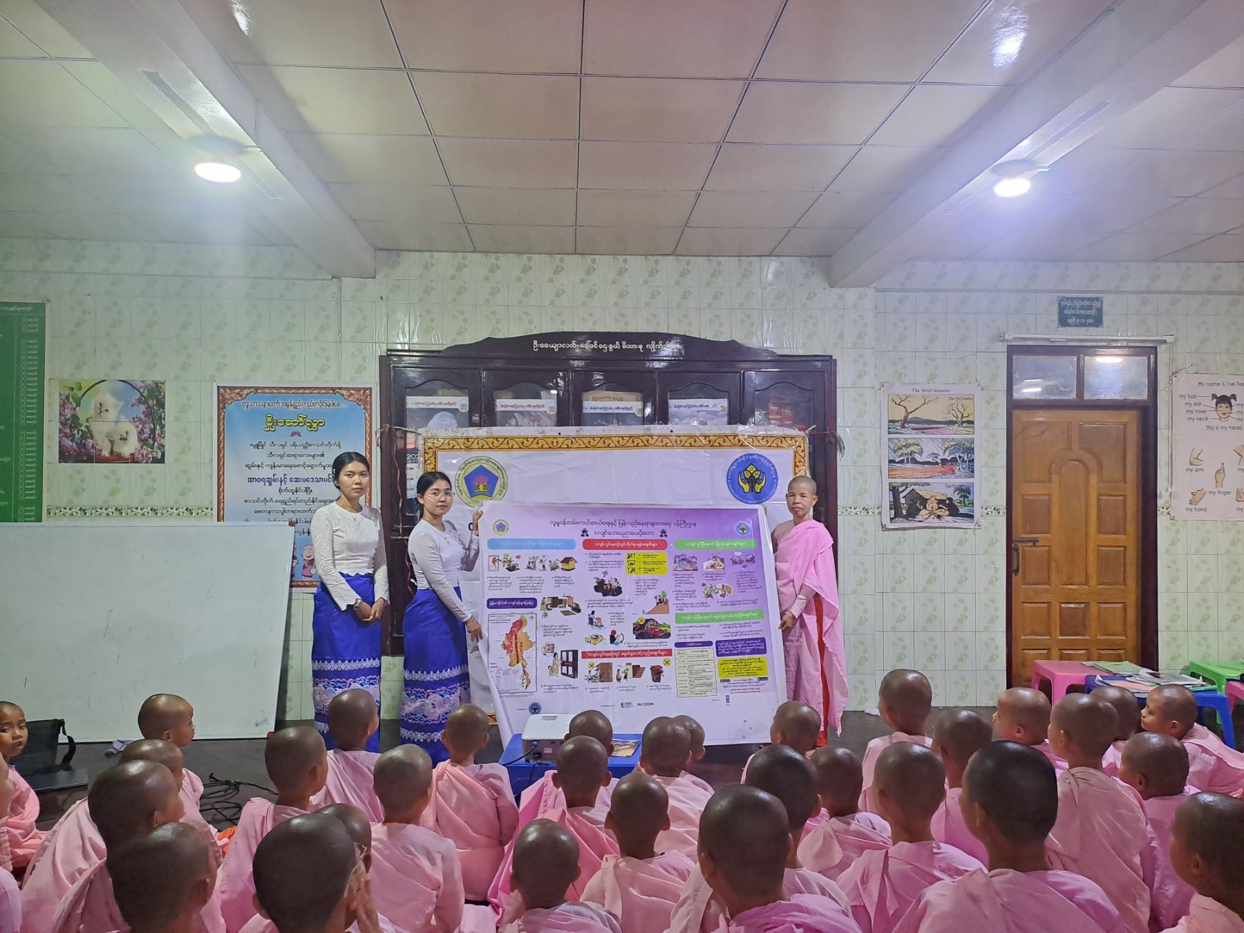 လူမှုဝန်ထမ်း၊ ကယ်ဆယ်ရေးနှင့် ပြန်လည်နေရာချထားရေးဝန်ကြီးဌာန၊ ဘေးအန္တရာယ်ဆိုင်ရာစီမံခန့်ခွဲမှုဦးစီးဌာန၊ ကရင်ပြည်နယ်ဦးစီးမှူးရုံးမှ တာဝန်ရှိသူများသည် (၁၇-၃-၂၀၂၆)ရက်နေ့၊ (၁၆:၀၀) နာရီအချိန်မှ (၁၇:၃၀) နာရီအချိန်ထိ ဇမ္ဗူမြိုင်စာသင်တိုက်၌ ဆရာလေး (၁၅၀) ဦးတို့အား မန္တလေးငလျင်ကြီးလှုပ်ခတ်မှု (၁)နှစ်ပြည့် ရက်သတ္တပတ် အကြိုလှုပ်ရှားမှုအနေဖြင့် ငလျင်ဘေးအန္တရာယ်နှင့်စပ်လျဉ်း၍ ဆောင်ရန်/ ရှောင်ရန် အချက်များအား အသိပညာပေးဟောပြောဆွေးနွေးခဲ့ပြီး ဆရာလေးများအား ဘေး (၉) မျိုး လက်ကမ်းစာစောင် (၁၅၀) စောင်အားလည်းကောင်း၊ စာသင်တိုက်ဝင်းအတွင်း ကပ်နှံနိုင်ရေးအတွက် (၄x၅)ပေ ငလျင်ဘေးဗီနိုင်းပိုစတာအားလည်းကောင်း ဖြန့်ဝေပေးခဲ့ပါသည်။ Source: DDM