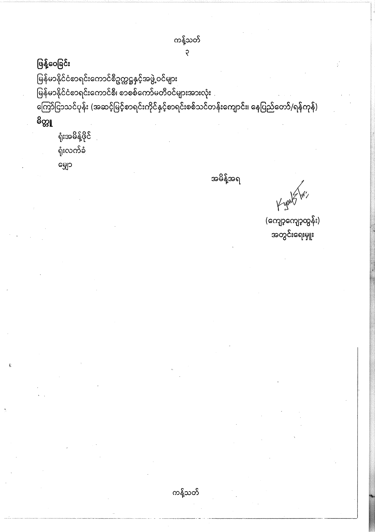 နေပြည်တော်ကောင်စီဥက္ကဋ္ဌ ခန့်အပ်တာဝန်ပေးခြင်း