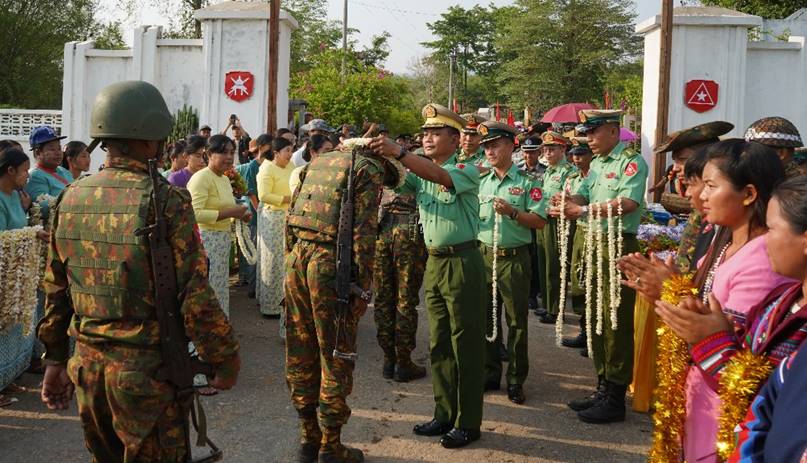 တိုင်းဒေသကြီးနှင့် ပြည်နယ်အသီးသီးရှိ တိုင်းရင်းသားပြည်သူများ စိတ်အေးချမ်းသာစွာ နေထိုင်လုပ်ကိုင်စားသောက်နိုင်ရေးနှင့် အသက်အိုးအိမ်စည်းစိမ်ဥစ္စာလုံခြုံမှုရှိစေရေး၊ နိုင်ငံတော်တည်ငြိမ်ရေး၊ နယ်မြေအေးချမ်းရေးအတွက် ရှေ့တန်းစစ်မျက်နှာများတွင် စစ်ဆင်ရေးတာဝန်များကို နေ့မအားညမနားစွမ်းစွမ်းတမံ တာဝန်ထမ်းဆောင်ခဲ့သော ရှေ့တန်းပြန်တပ်မတော်သားများအား တိုင်းမှူးနှင့် တက်ရောက်လာကြသူများက အောင်သပြေခက်များဖြင့်လည်းကောင်း၊ တိုင်းရင်းသားရိုးရာ အတီး၊ အမှုတ်၊ အက၊ အခုန်များဖြင့်လည်းကောင်း ဝမ်းမြောက်စွာ သောင်းသောင်းဖြဖြကြိုဆိုဂုဏ်ပြုကြသည်။ ထို့နောက် တိုင်းမှူးက အောင်ပွဲရရှေ့တန်းပြန် တပ်မတော်သားများအား ဂုဏ်ပြုအမှာစကားပြောကြားပြီး ဂုဏ်ပြုချီးမြှင့်ငွေနှင့် အသုံးအဆောင်ပစ္စည်းများ ပေးအပ်ခဲ့ကြောင်း သတင်းရရှိသည်။