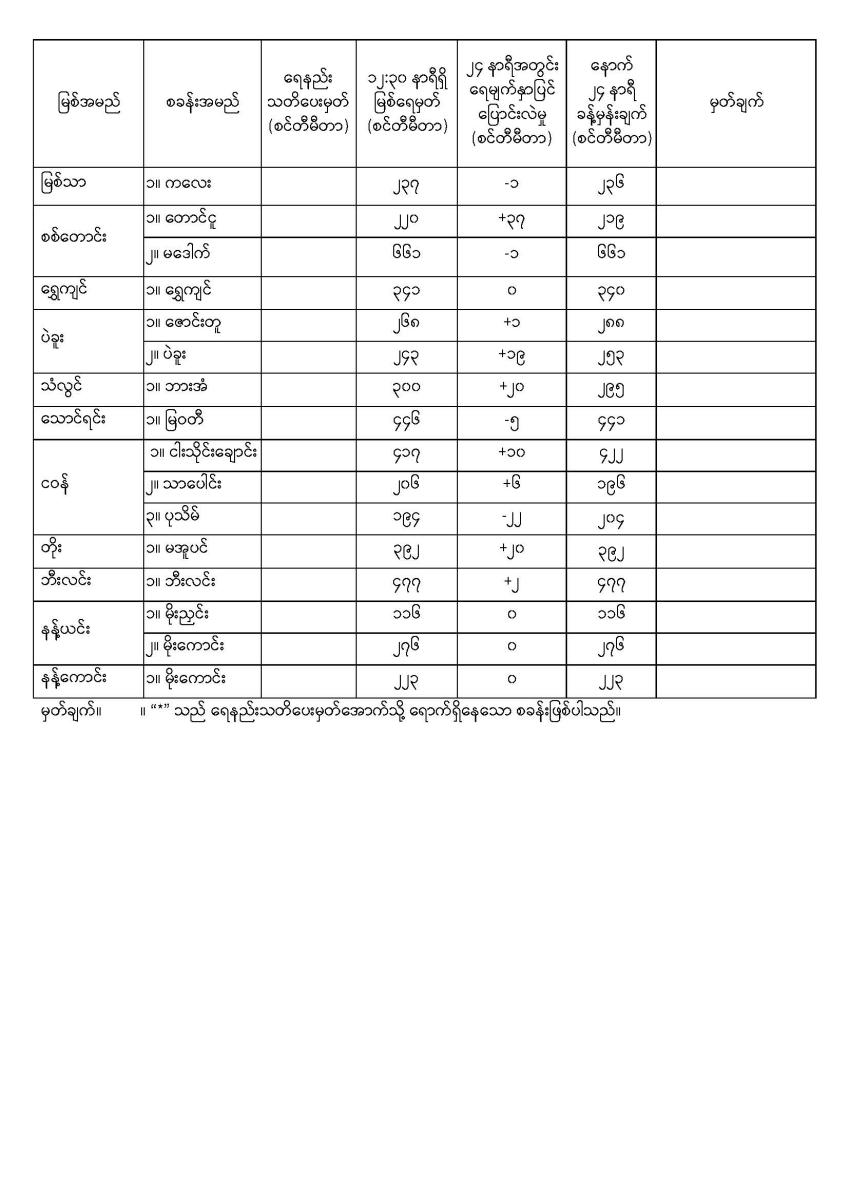နေ့စဉ်မြစ်ရေခန့်မှန်းချက် ၃-၁-၂၀၂၆ ရက်နေ့ ၁၄:၀၀ နာရီအချိန်ထုတ်ပြန်ချက်