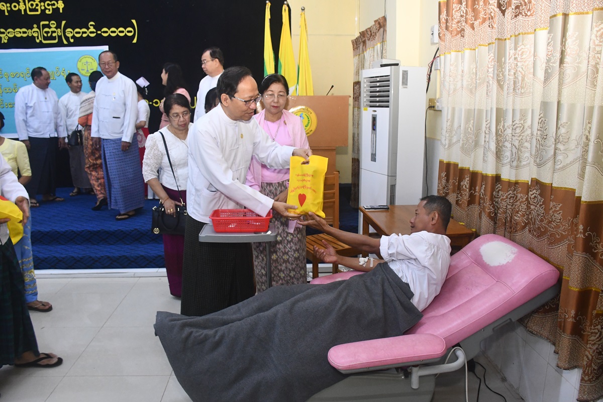 ထို့နောက် ကျန်းမာရေးဝန်ကြီးဌာန ပြည်ထောင်စုဝန်ကြီး ဒေါက်တာသက်ခိုင်ဝင်းက ဆေးရုံတက်ရောက်ကုသလျက်ရှိသော လူနာများအတွက် သွေးလာရောက်လှူဒါန်းကြသည့် ပြည်ထောင်စုစာရင်းစစ်ချုပ်ရုံးမှ ဝန်ထမ်းများအား ကျေးဇူးတင်ဂုဏ်ပြုမှတ်တမ်းလွှာ ပြန်လည်ပေးအပ်ခဲ့သည်။