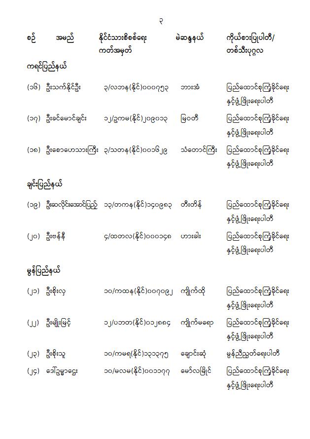အမျိုးသားလွှတ်တော်ကိုယ်စားလှယ်အဖြစ် အမည်စာရင်းကြေညာခြင်း
