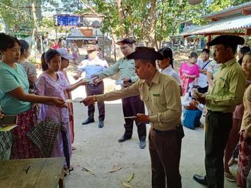 ရန်ကုန်တိုင်းဒေသကြီး၊ ရွှေပြည်သာမြို့နယ်၊ ရွှေညာမောင်ဈေး၌ ရွေးကောက်ပွဲတွင် မဲဆန္ဒရှင် ပြည်သူများအားလုံး ပါဝင်မဲပေးနိုင်ရေးအတွက် လက်ကမ်းစာစောင်များ ဖြန့်ဝေ