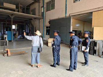 ရန်ကုန်တိုင်းဒေသကြီး၊ ရွှေပြည်သာမြို့နယ်၊ စက်မှုဇုန်(၁)၌ Royal Aster Co.Ltd အရက်ပုလင်းသွပ်နှင့် အချိုရည်စက်ရုံတွင် မီးဘေးကြိုတင်ကာကွယ်ရေးလုပ်ငန်းများ စစ်ဆေးဆောင်ရွက်မှု