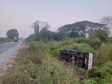 ဧရာဝတီတိုင်းဒေသကြီး၊ ပန်းတနော်မြို့နယ်၊ ရန်ကုန်-ပုသိမ်ကားလမ်း၊ မိုင်တိုင်အမှတ် ၅၄ မိုင် ၇ ဖာလုံနှင့် ၅၅ မိုင် ၀ ဖာလုံကြားတွင် ယာဉ်တိမ်းမှောက်မှု
