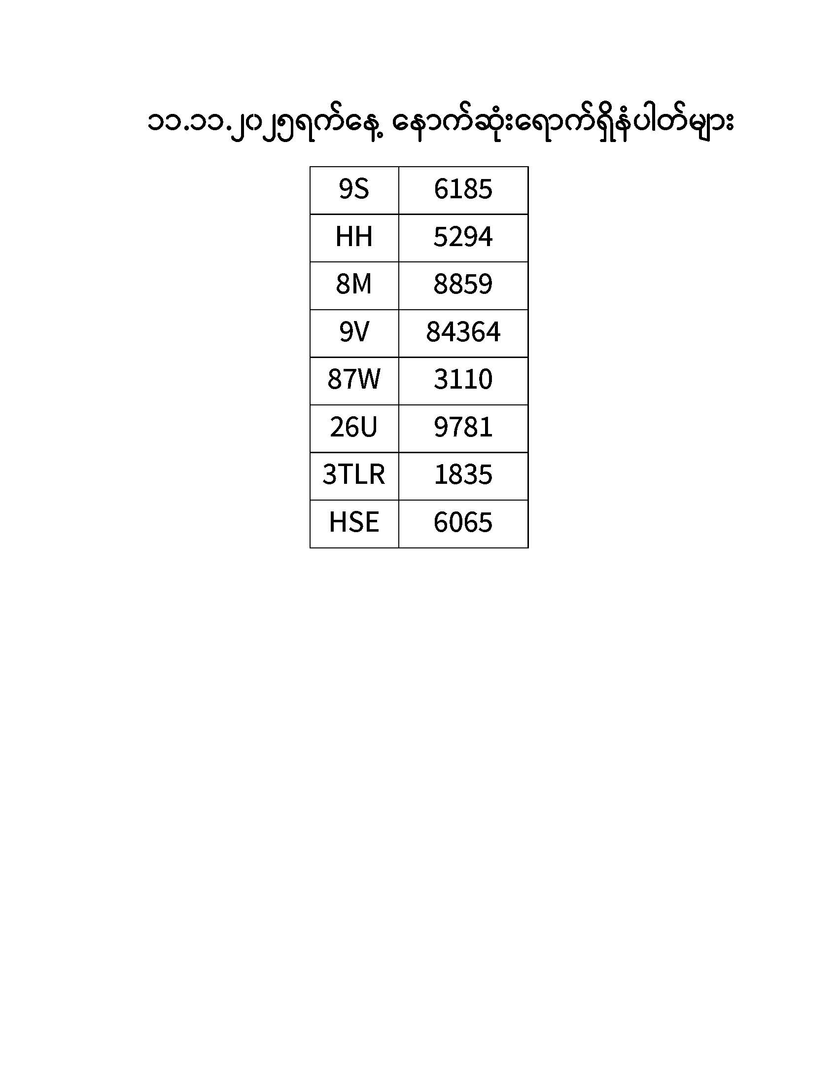 ၁၁.၁၁.၂၀၂၅ ရက်နေ့ထိ နောက်ဆုံးရောက်ရှိ နံပါတ်များ