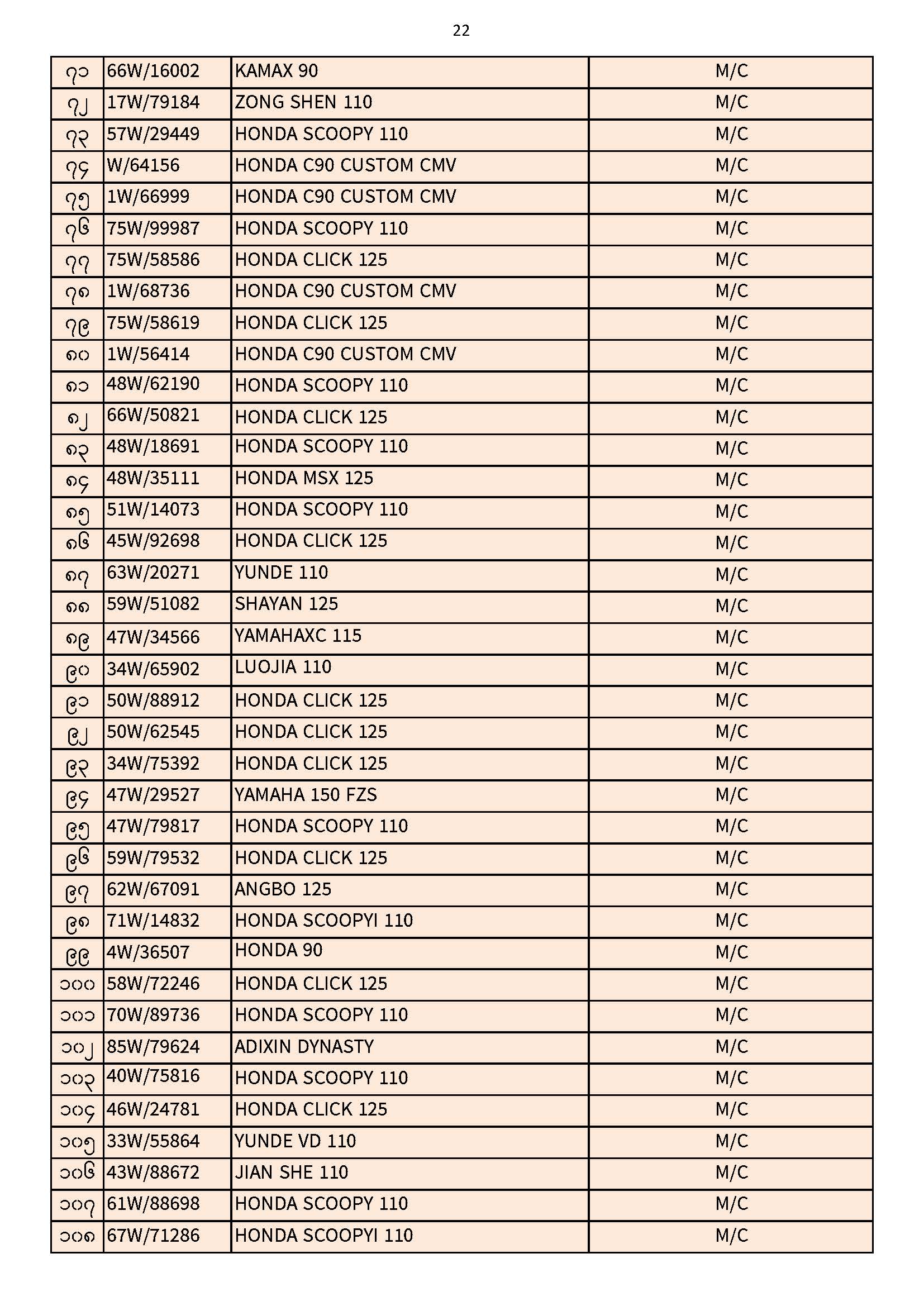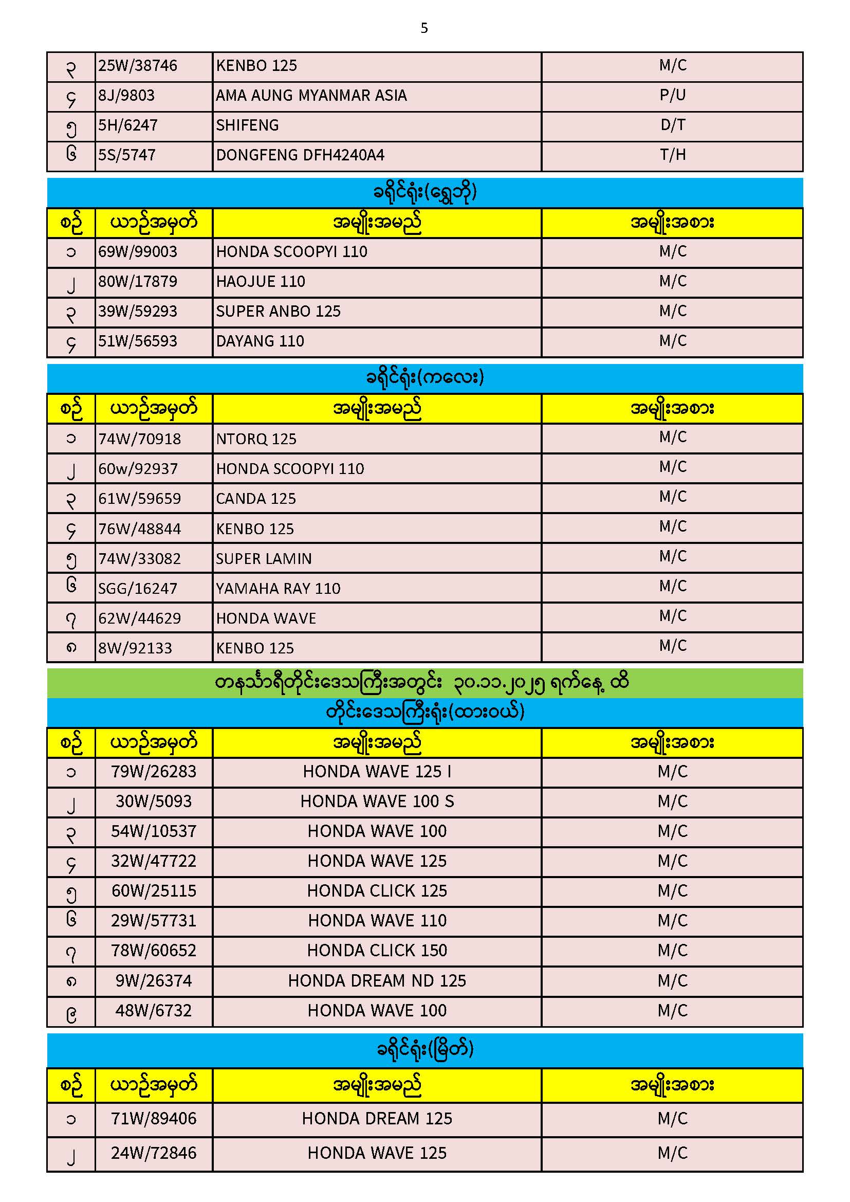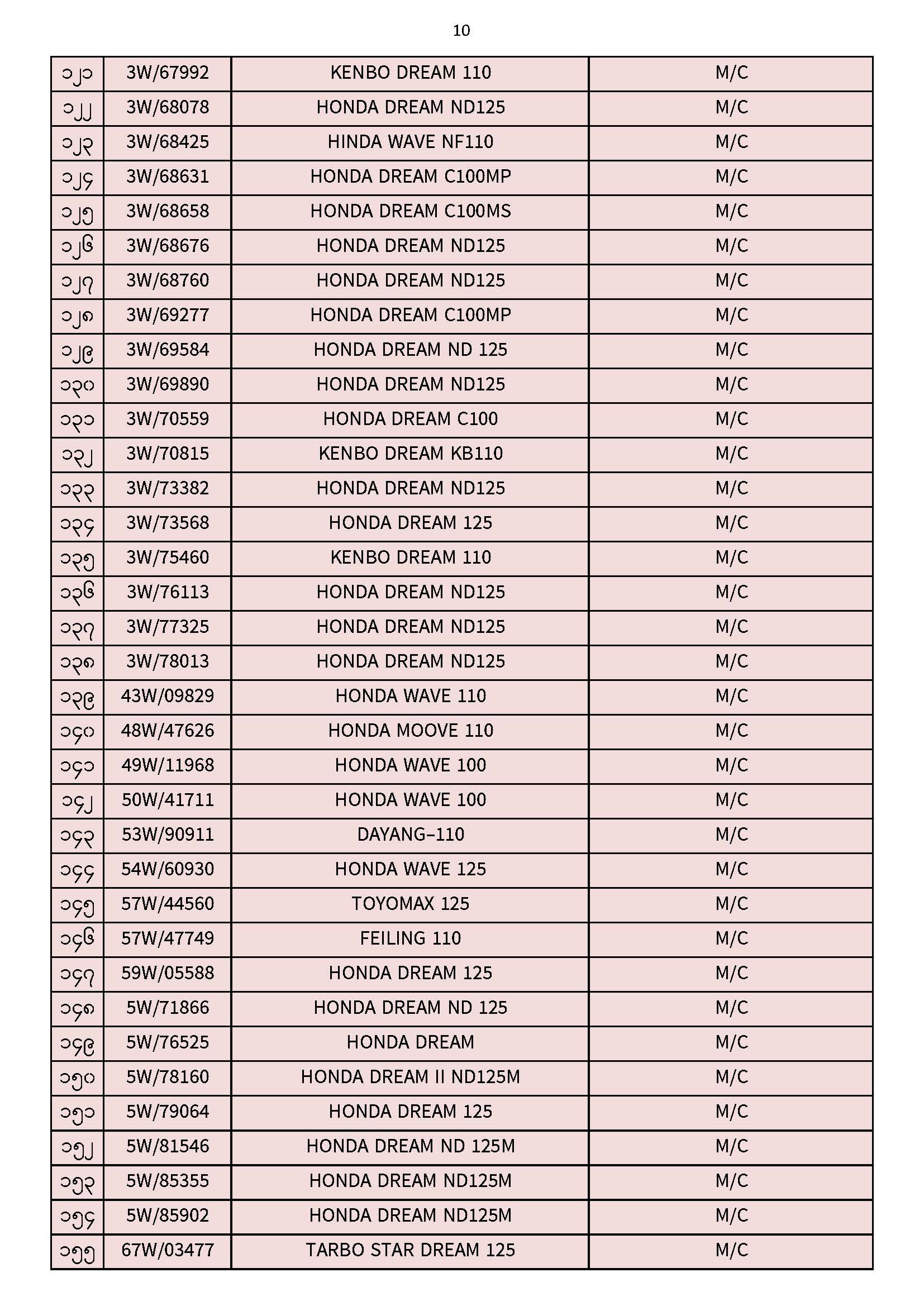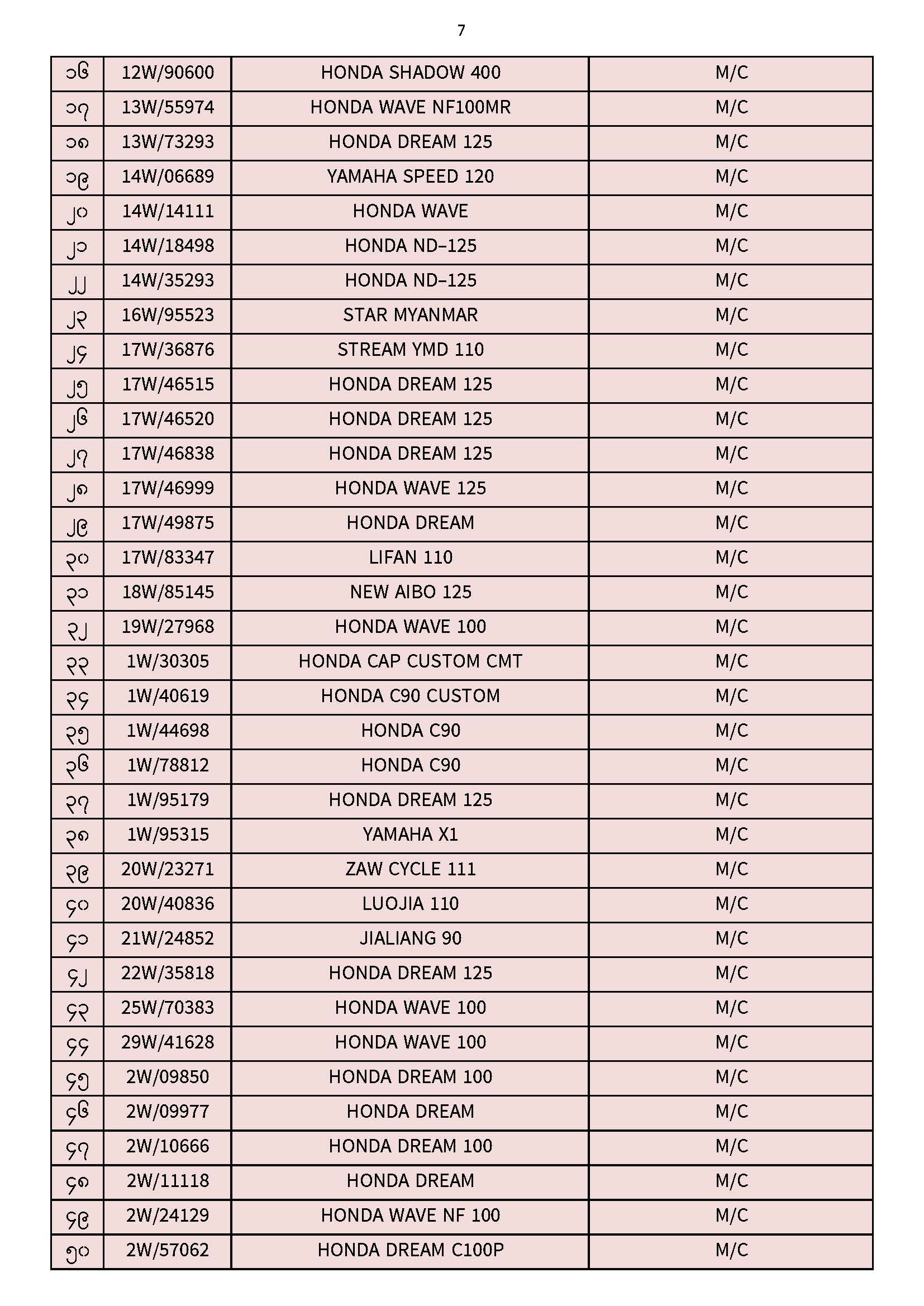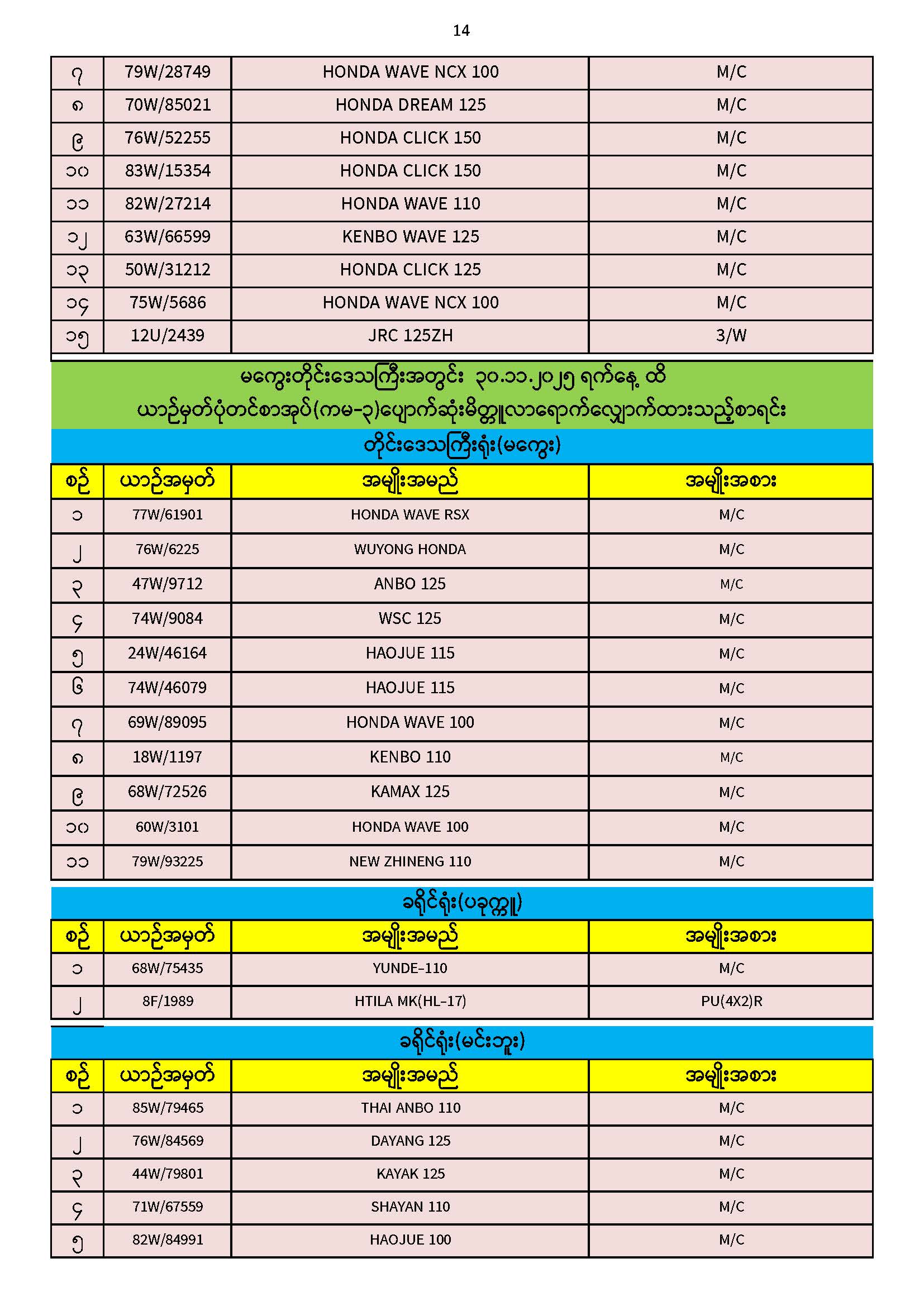 ၃၀.၁၁.၂၀၂၅ ရက်နေ့ထိ ယာဉ်မှတ်ပုံတင်စာအုပ်(ကမ-၃) ပျောက်ဆုံးမိတ္တူလာရောက် လျှောက်ထားသည့်စာရင်း