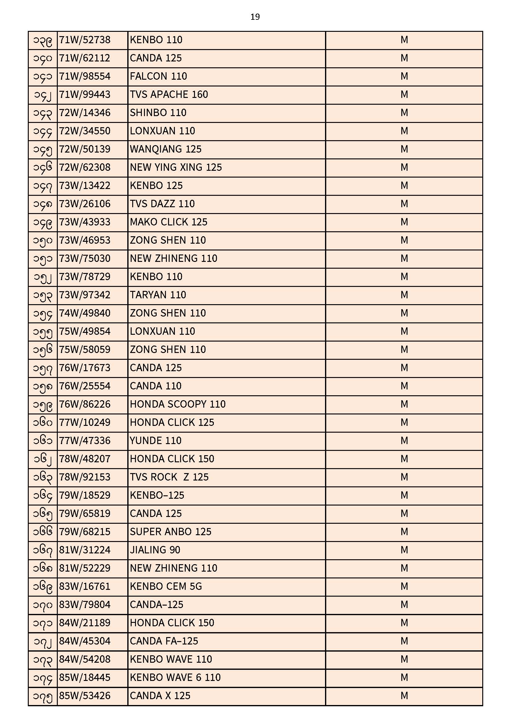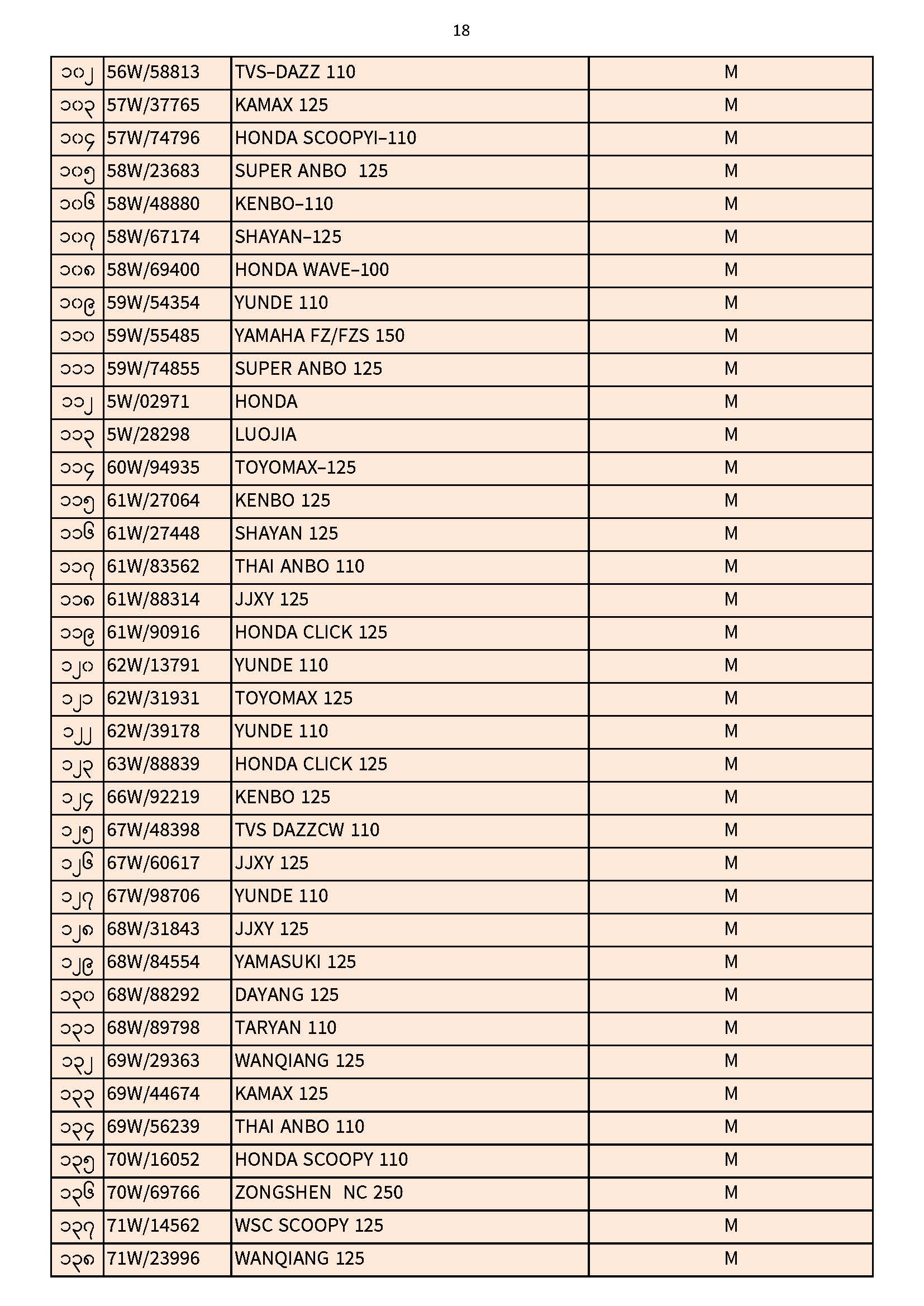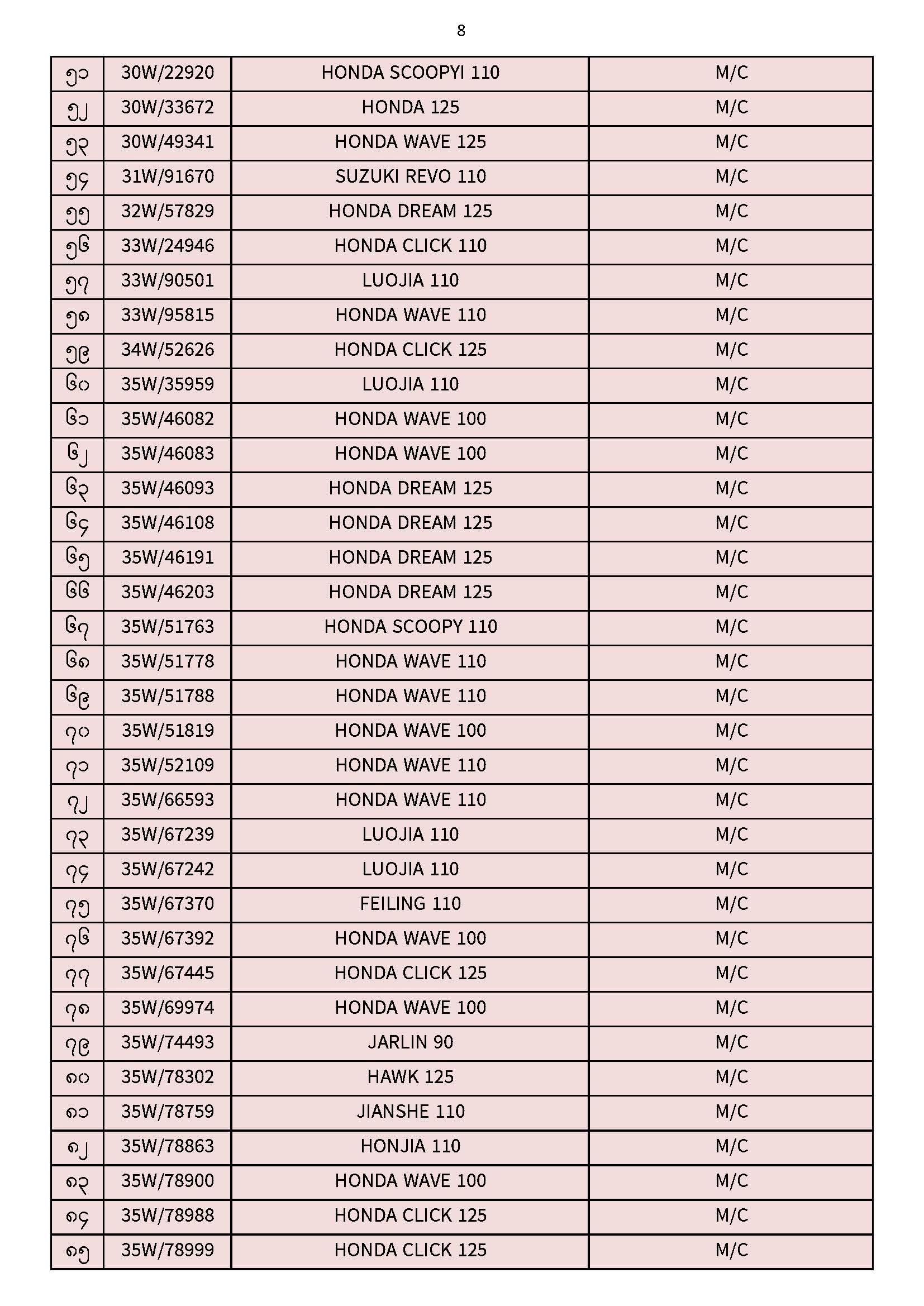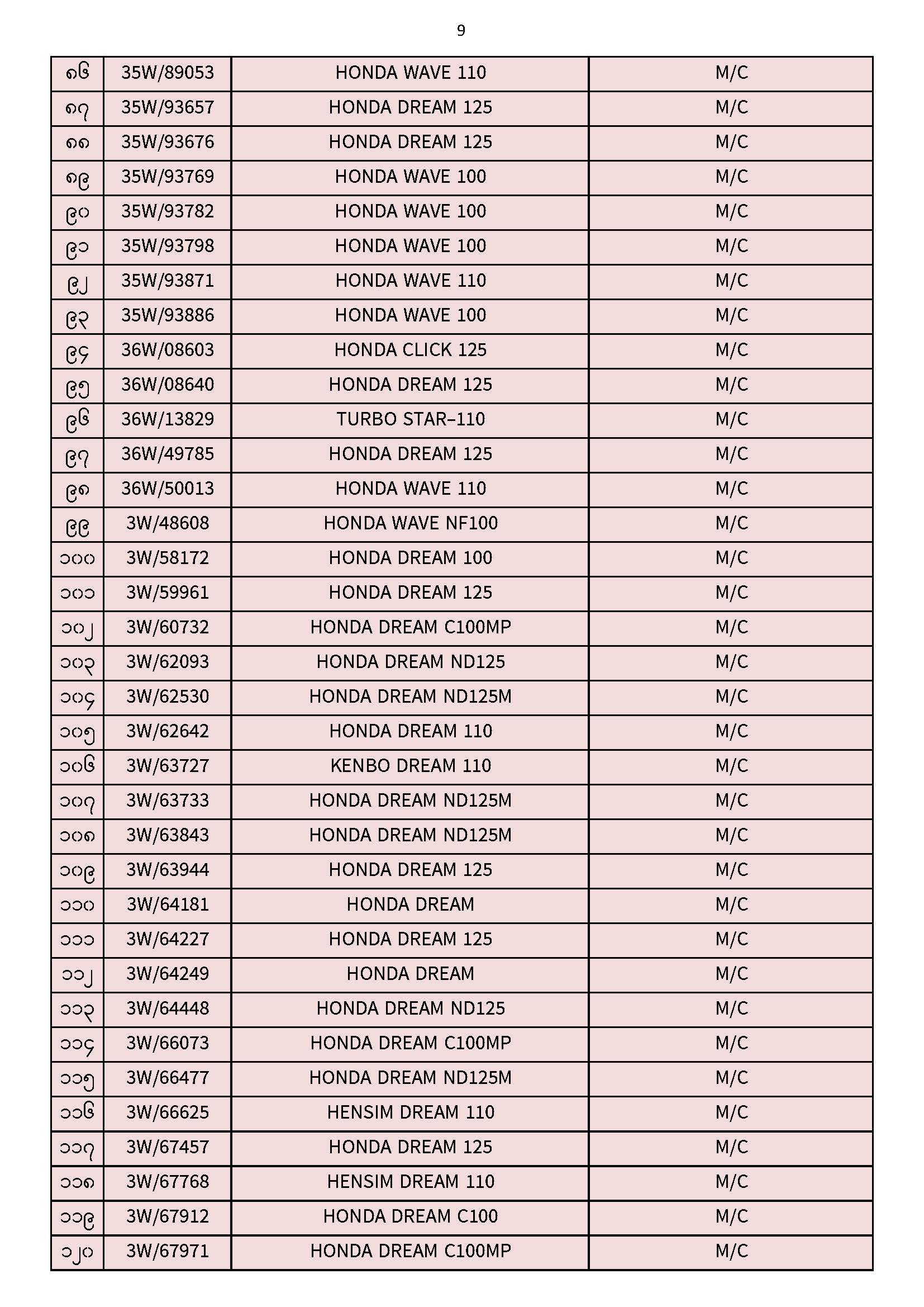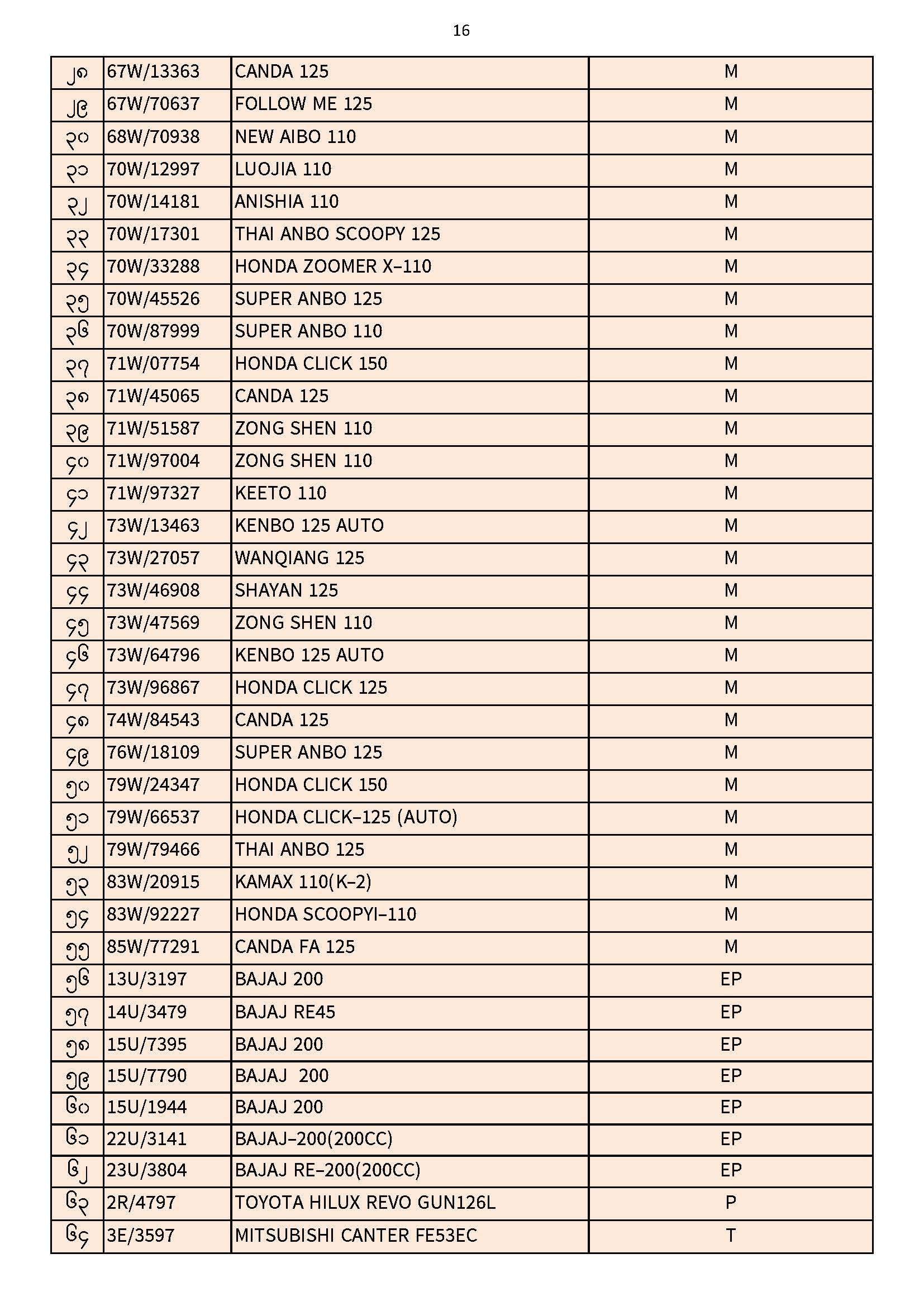 ၃၀.၁၁.၂၀၂၅ ရက်နေ့ထိ ယာဉ်မှတ်ပုံတင်စာအုပ်(ကမ-၃) ပျောက်ဆုံးမိတ္တူလာရောက် လျှောက်ထားသည့်စာရင်း