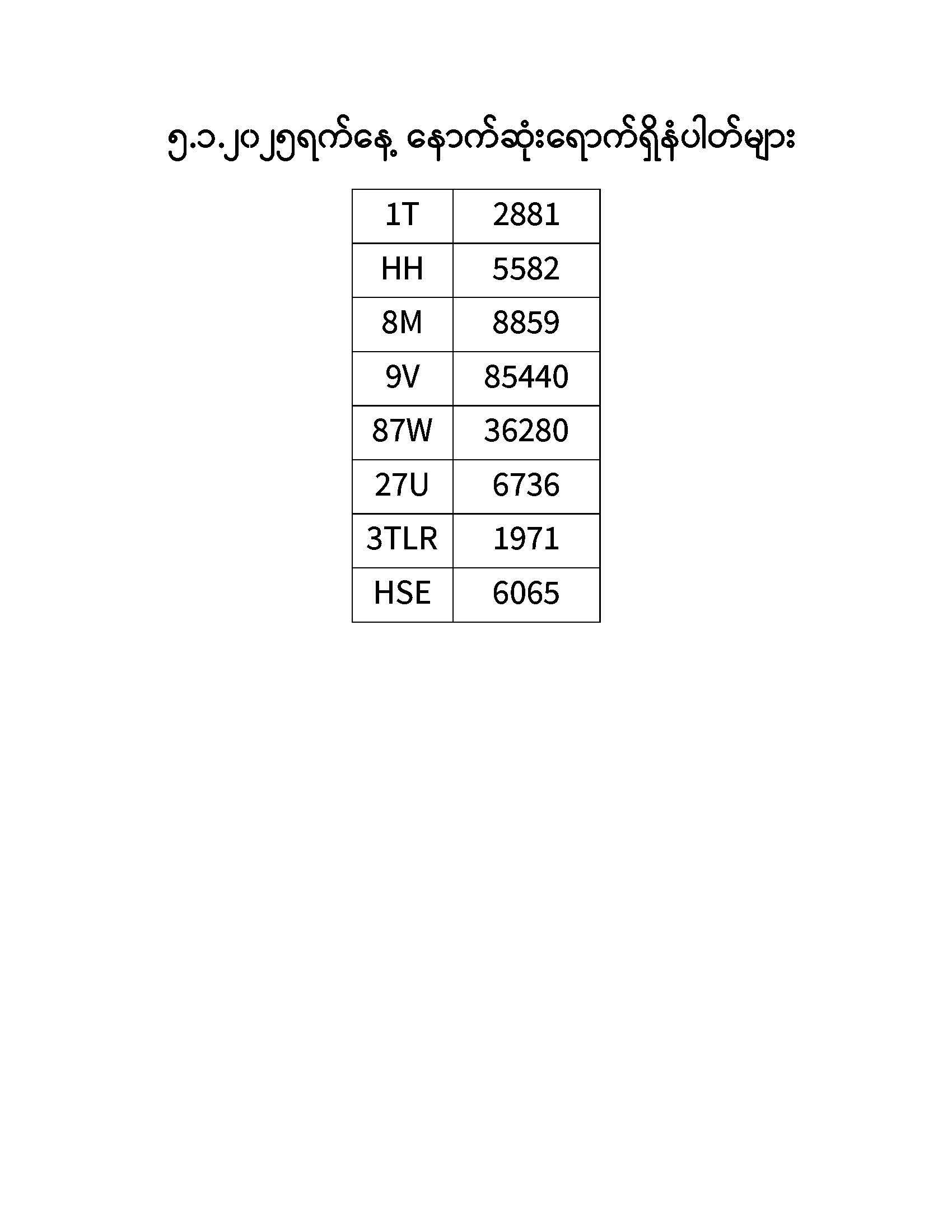 ၅.၁.၂၀၂၅ ရက်နေ့ထိ နောက်ဆုံးရောက်ရှိ နံပါတ်များ