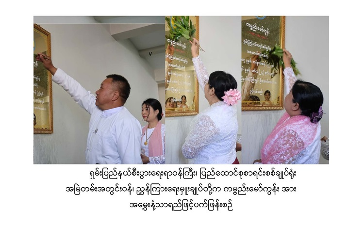 ယင်းနောက် ပြည်နယ်ဝန်ကြီးချုပ်၊ တိုင်းမှူးနှင့်တာဝန်ရှိသူများသည် ကမ္ဗည်းမော်ကွန်း အား အမွှေးနံ့သာရည်ဖြင့် ပက်ဖျန်းပေးကြပြီး ဧည့်သည်တော်မှတ်တမ်းစာအုပ်တွင် လက်မှတ် ရေးထိုးပေးခဲ့ကြသည်။