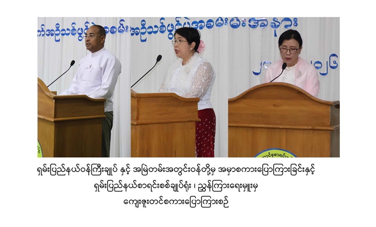 ယင်းနောက် ပြည်ထောင်စုစာရင်းစစ်ချုပ်ရုံး အမြဲတမ်းအတွင်းဝန် ဒေါ်ခိုင်ခိုင်အောင်က အမှာစကားပြောကြားရာတွင် ရှမ်းပြည်နယ်စာရင်းစစ်ချုပ်ရုံးသစ်ကြီးကို အောင်မြင်စည်ကားစွာ ဖွင့်လှစ်နိုင်ခဲ့သည့်အတွက် များစွာဂုဏ်ယူဝမ်းမြောက်မိပါကြောင်း၊ သဘာဝသယံဇာတ အရင်း အမြစ်များကို အကျိုးရှိစွာအသုံးပြုနိုင်မှု၊ ပြည်သူ့ဘဏ္ဍာငွေစီမံခန့်ခွဲမှုနှင့် စပ်လျဉ်းပြီး ပြည်ထောင်စုစာရင်းစစ်ချုပ်ရုံးနှင့် ဒေသစာရင်းစစ်ရုံးများသည် နိုင်ငံနှင့်ပြည်သူ့အကျိုးကို ကာကွယ်မြှင့်တင်နိုင်သည့် အဖွဲ့အစည်းတစ်ရပ်အဖြစ်ရပ်တည်နိုင်ရန် စစ်ဆေးရေးလုပ်ငန်းများ ကို အရည်အသွေးပြည့်မီစွာ ထိရောက်အကျိုးရှိစွာနှင့် စစ်ဆေးရေးလုပ်ငန်းဆိုင်ရာများ ပိုမို တိုးတက်မှုရှိအောင် စာရင်းစစ်ရုံးအဆင့်ဆင့်မှ ဝန်ထမ်းများအနေဖြင့် ကြိုးပမ်းဆောင်ရွက်လျက် ရှိပါကြောင်း၊ ယခုဆောက်လုပ်ပြီးစီးခဲ့သည့် ရှမ်းပြည်နယ်စာရင်းစစ်ချုပ်ရုံးကို (၄) ထပ် ဆောက်လုပ်ထားပြီး သင်တန်းခန်းမနှင့် အစည်းအဝေးခန်းမများကိုလည်း ထည့်သွင်းဖွဲ့စည်း တည်ဆောက်ထားခြင်းဖြစ်သည့်အတွက် လူ့စွမ်းအားအရင်းအမြစ်များ ဖွံ့ဖြိုးတိုးတက်စေရန်၊ စစ်ဆေးရေးလုပ်ငန်းခွင်ကျွမ်းကျင်မှု မွမ်းမံသင်တန်းများဖွင့်လှစ်ခြင်း၊ ဌာနဆိုင်ရာ အဖွဲ့အစည်း များမှ ဝန်ထမ်းများအတွက်လိုအပ်သည့် စာရင်းရေးစာရင်းကိုင်ပညာရပ်များကို သင်ကြားပေး မည့် အခြေခံစာရင်းကိုင်နှင့် ရုံးလုပ်ငန်းကျွမ်းကျင်မှုသင်တန်းများ ဖွင့်လှစ်ပေးနိုင်ခြင်းတို့ ဆောင်ရွက်နိုင်မည်ဖြစ်ကြောင်းနှင့် စစ်ဆေးရေးလုပ်ငန်းတာဝန်များကို တက်ညီလက်ညီနှင့် အရည်အသွေးပြည့်ဝပြီး ထိရောက်အကျိုးရှိအောင် ကြိုးပမ်းဆောင်ရွက်သွားကြရန် ပြောကြား ခဲ့သည်။